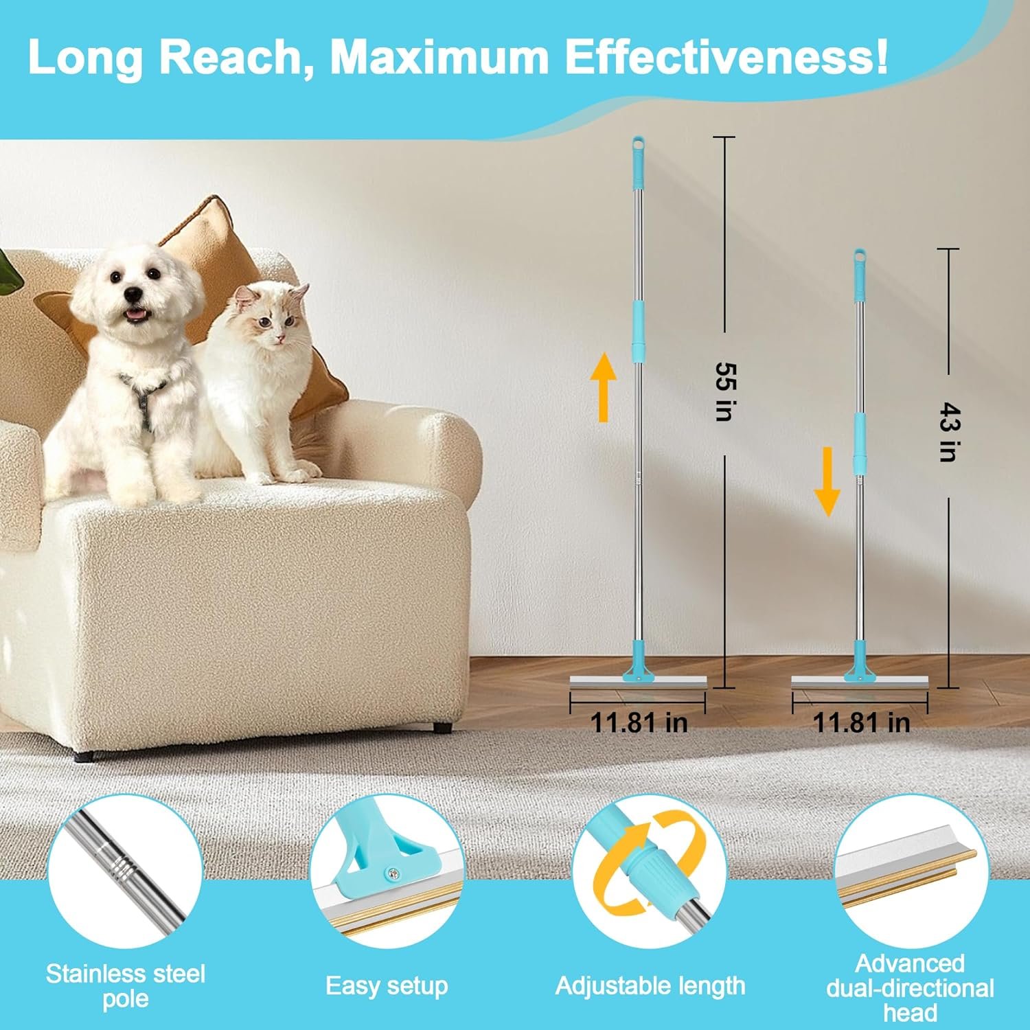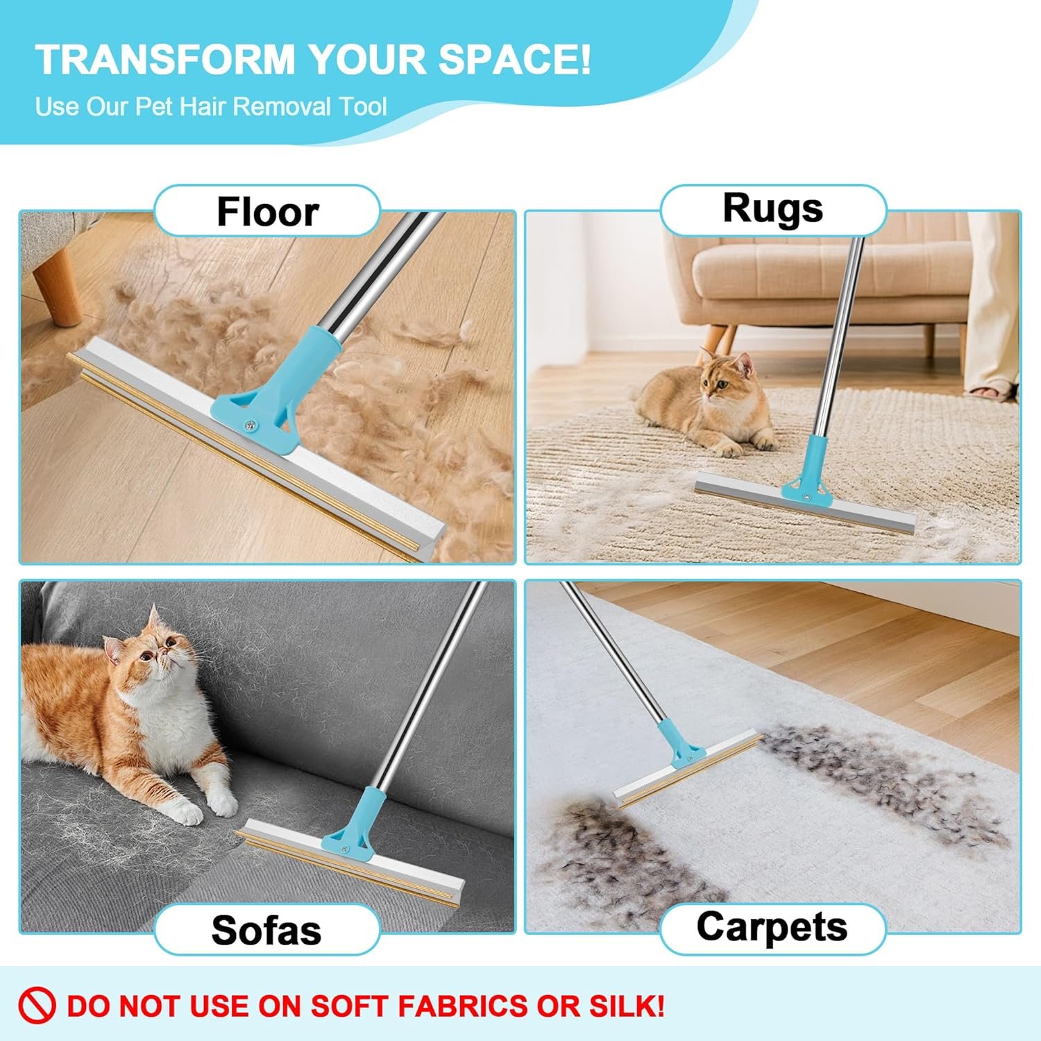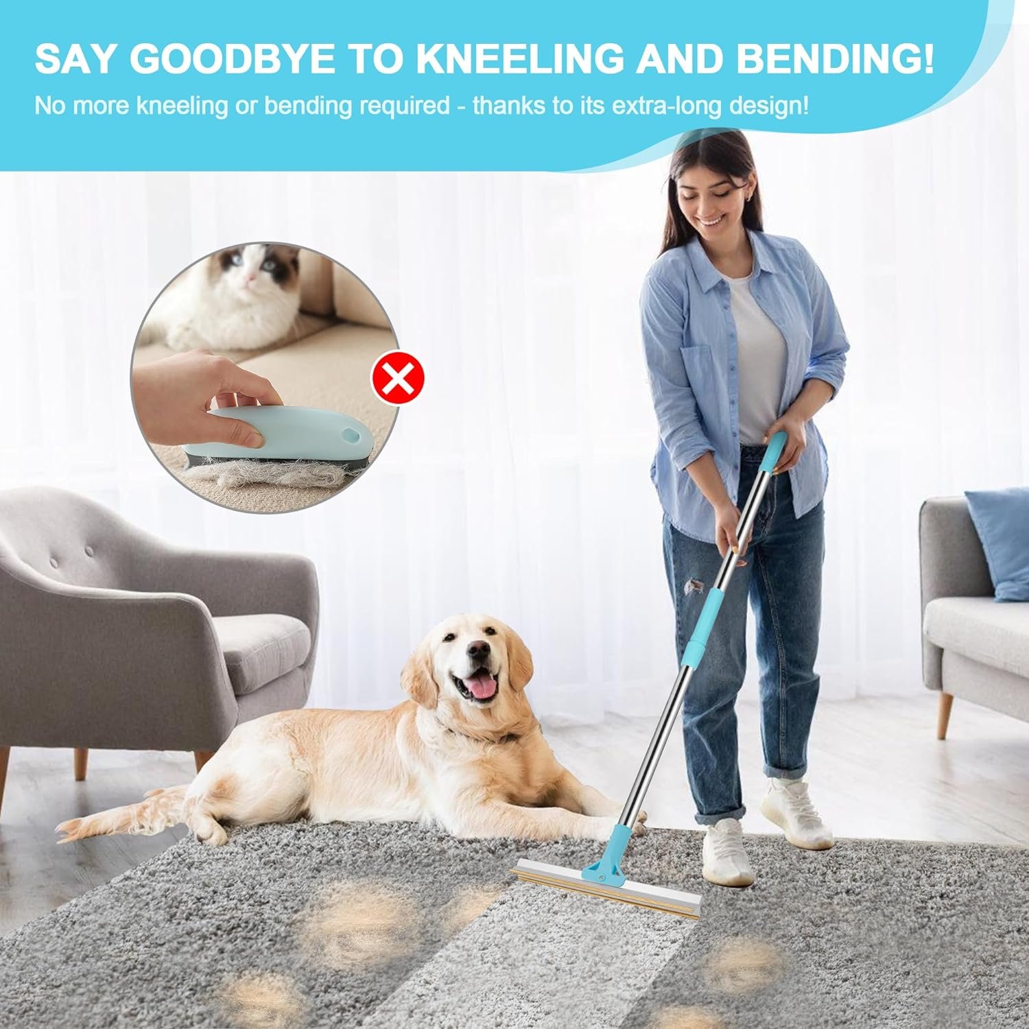 PET HAIR EVERYWHERE? – Have you ever meet these problems before? Pet hair is everywhere, on your carpet, sofa, and mat, and you often need to spend a lot of time cleaning. Bending down and kneeling on the ground to clean hair often drives you crazy! Why not get the Pet Hair Remover Broom?