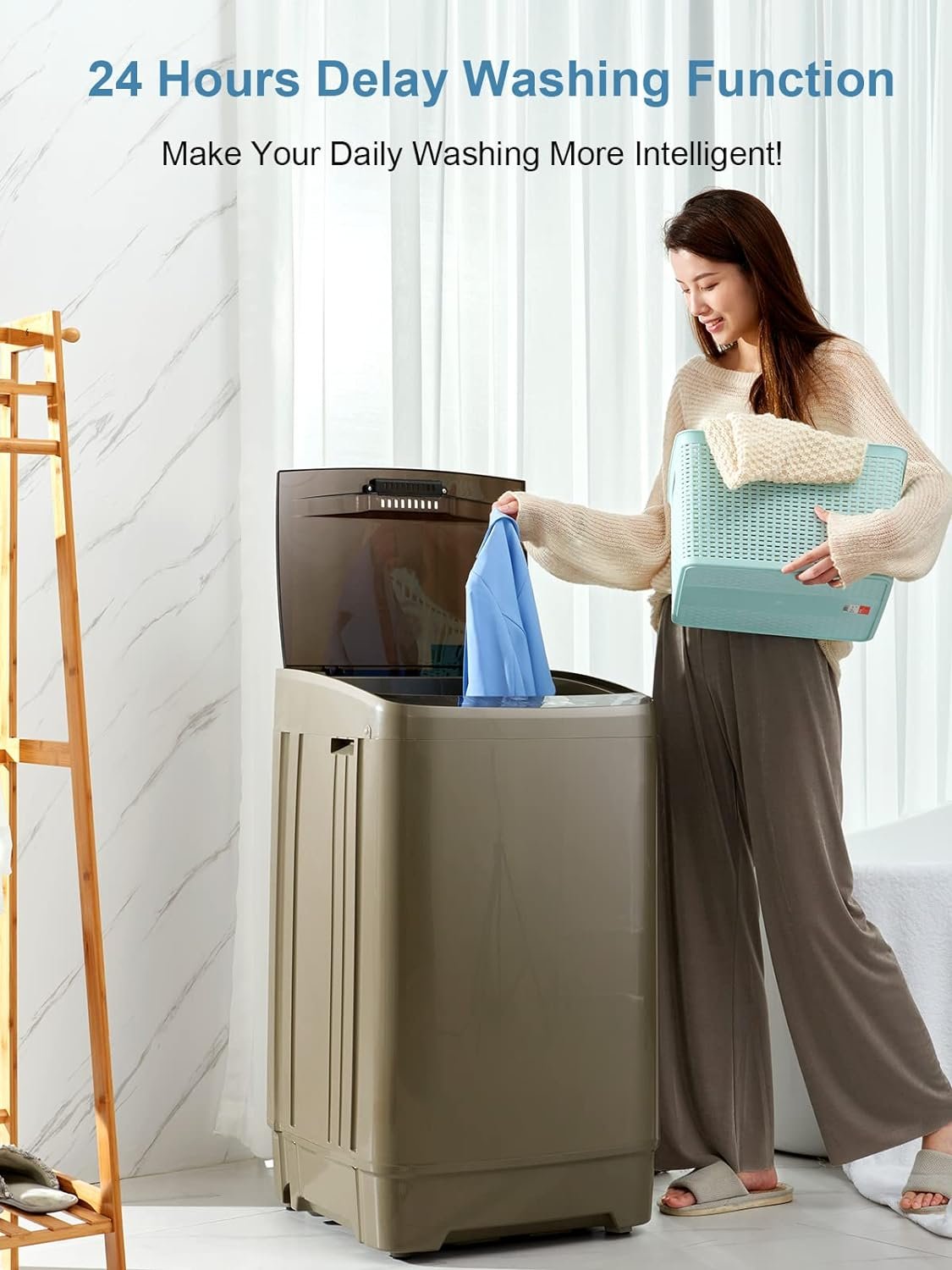👗【Relief Your Hands】: Our portable full automatic laundry washing machine only needs a small space for store, which is a solution for compact living. Once you set the washing machine program, you could just leave it alone to work and do your own staffs. It could relief your hands and you could use the time to do other things.