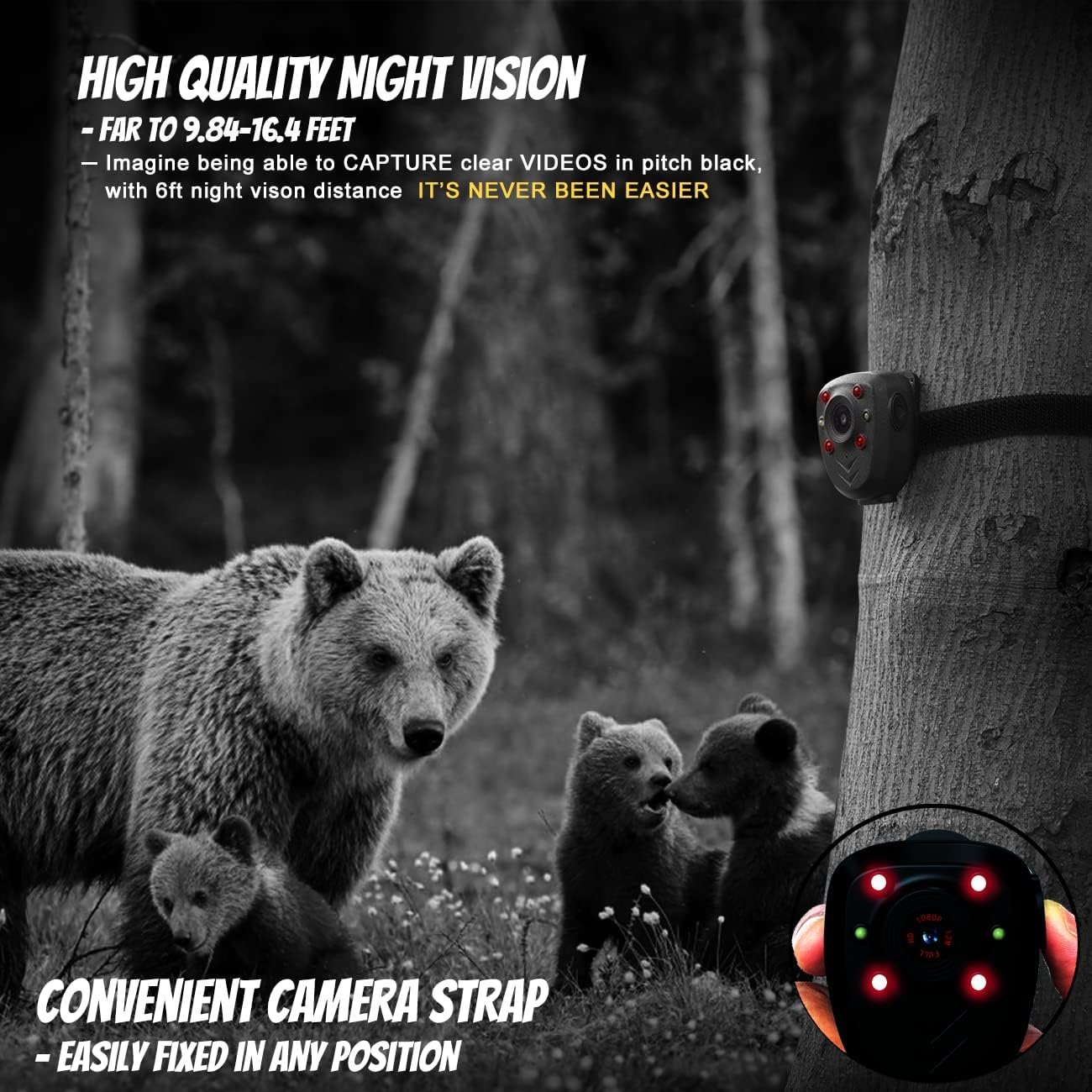 ☑ Mini Outdoor Camera is enhanced with Night Vision: This small camera is suitable for the outdoor. Wear it to do some outdoor sports, such as running, and bike-riding, allowing you to record in the complete darkness. Incredible HD 1080P video recording at 30fps, bring you clear and fluent videos. This personal body cam features a 90 degrees lens, so you can also get a broad field of view. Equipped with 4 high-intensity infrared LEDs, the distance of night vision up to 15 feet.