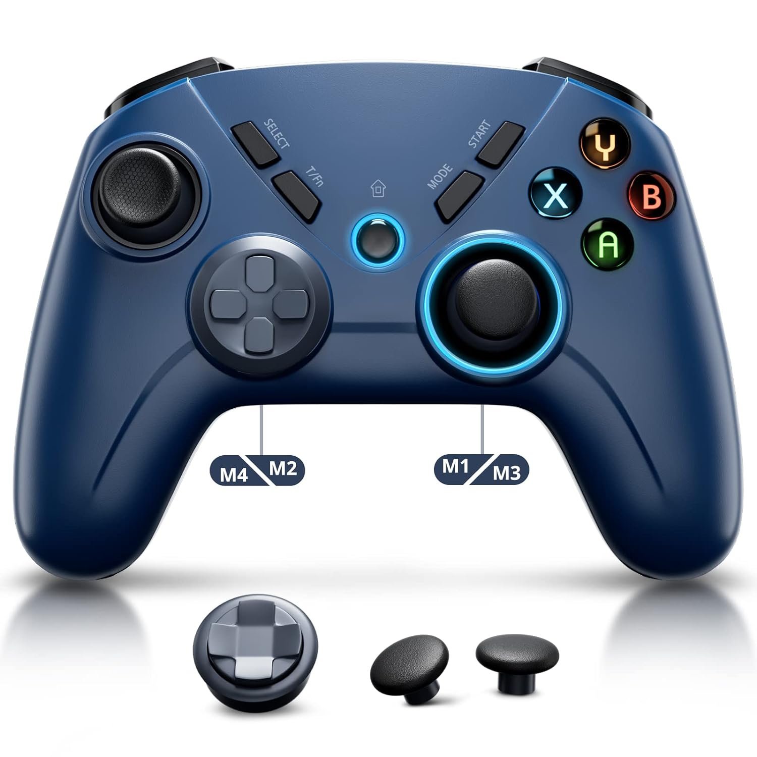 ADJUSTABLE DUAL VIBRATION & LED BACKLIGHT: The pc controller built-in dual motors with 4 levels of vibration intensity can be adjusted for a great gaming experience! Press T/FN and D-pad to adjust to None/Weak/Moderate/Strong according to your needs during the game to meet different gamers’ demands. This Bluetooth gaming controller with ABXY button and joystick in fashionable LED light, you can adjust 4 levels light of ABXY to 0-35%-75%-100%.