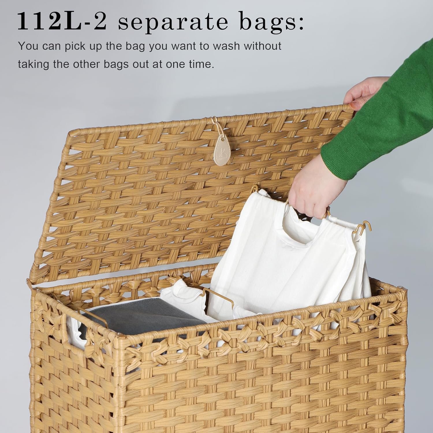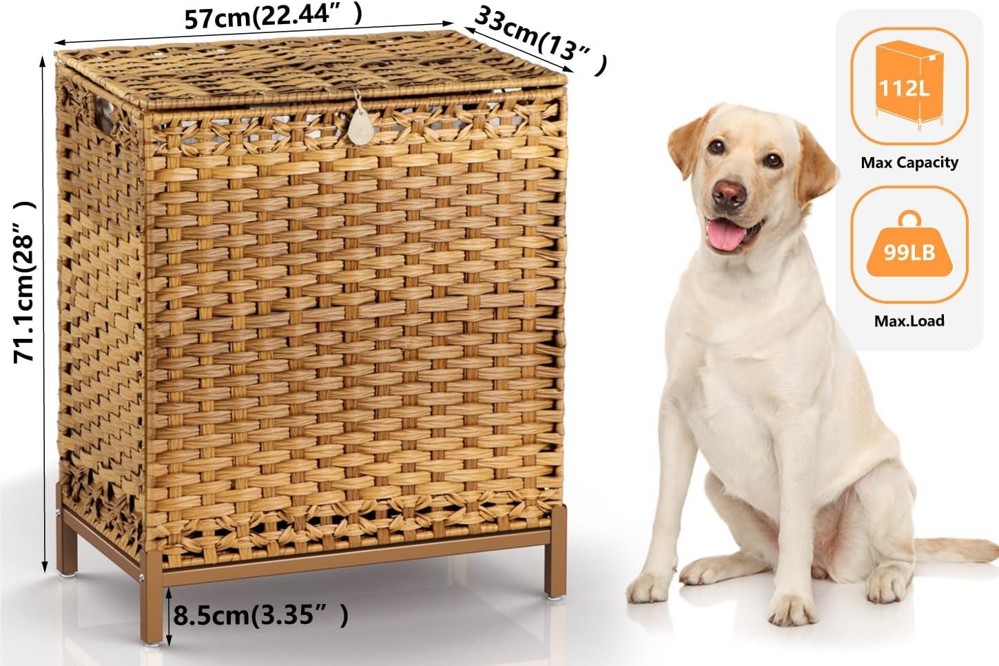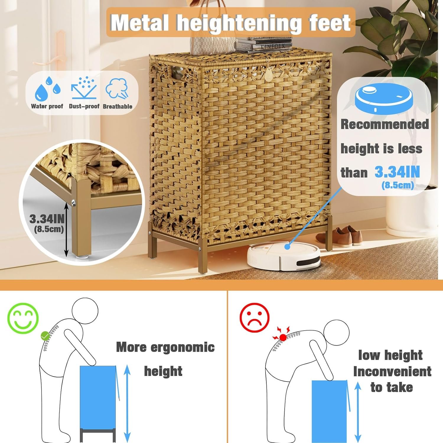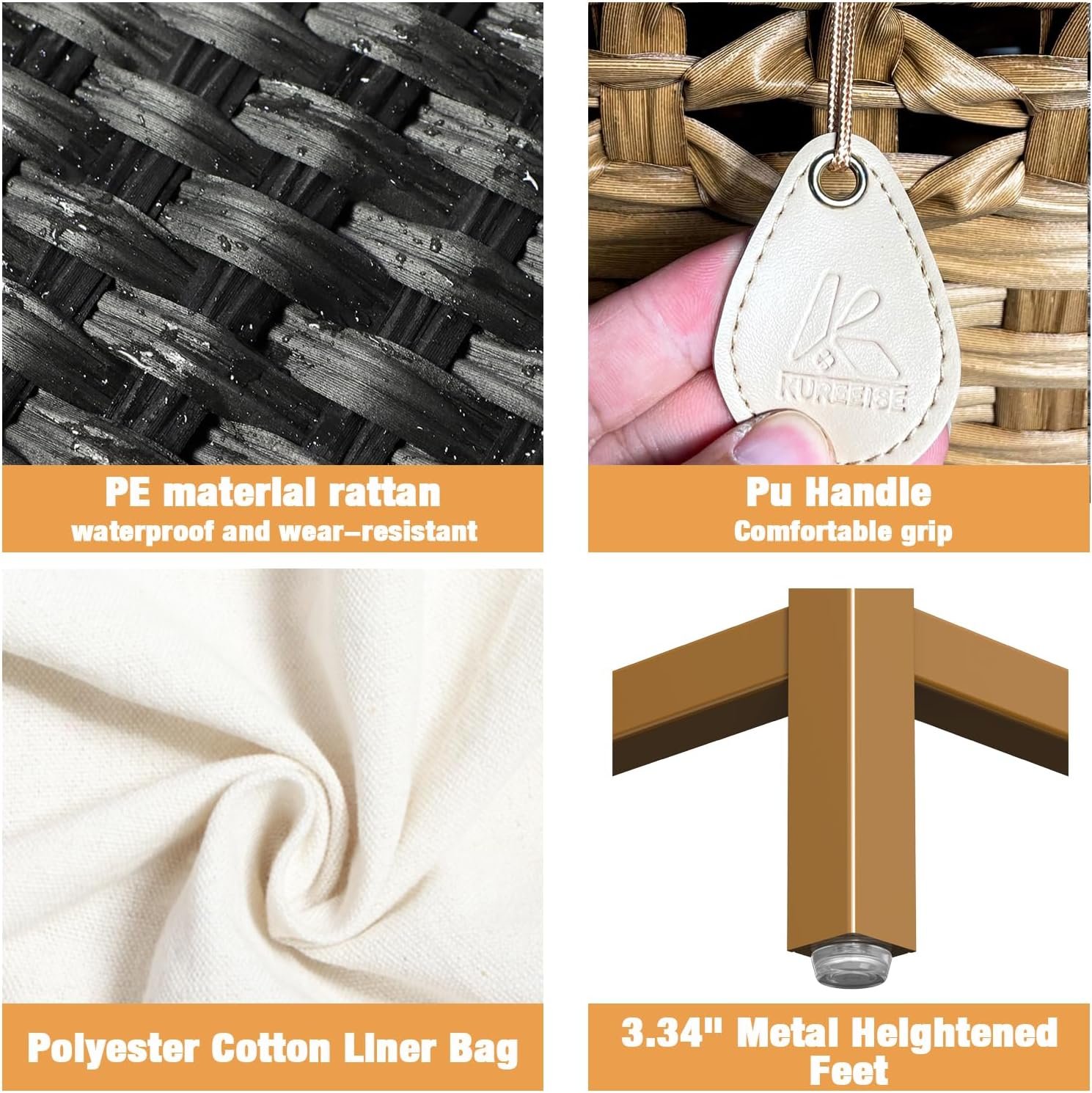 [Sturdy Internal Frame and Material]: The internal frame of the laundry sorter is made of strong and thickened rust proof iron tube , hand-woven from PE material rattan, and the rattan surface is waterproof and wear-resistant.