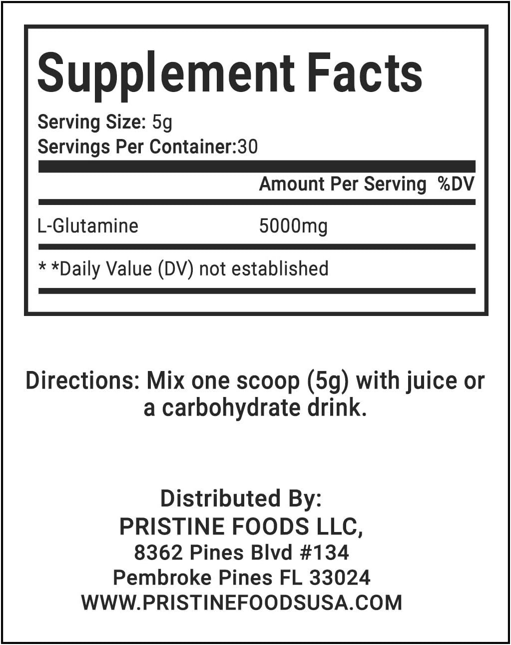 PRISTINE GLUTAMINEPRISTINE Glutamine contains only the highest-quality, pharma-grade PRISTINE L-Glutamine to accelerate recovery, boost immunity and digestion. Intense exercise can deplete glutamine levels over 50% and take more than 5 days before they’re restored. So keeping PRISTINE L-Glutamine levels high helps prevent muscle breakdown and keeps a positive nitrogen balance in the body that’s essential to muscle repair and reducing soreness while supporting a healthy immune and digestive system so you get the most out of every day!100% Pure Vegan L-Glutamine