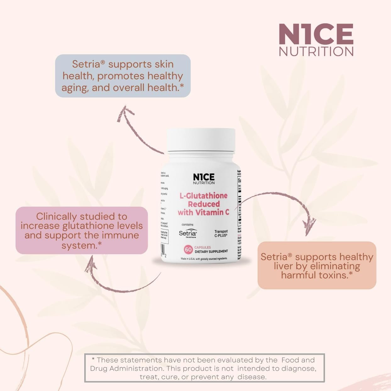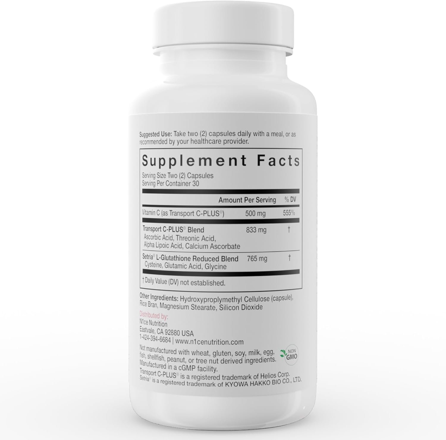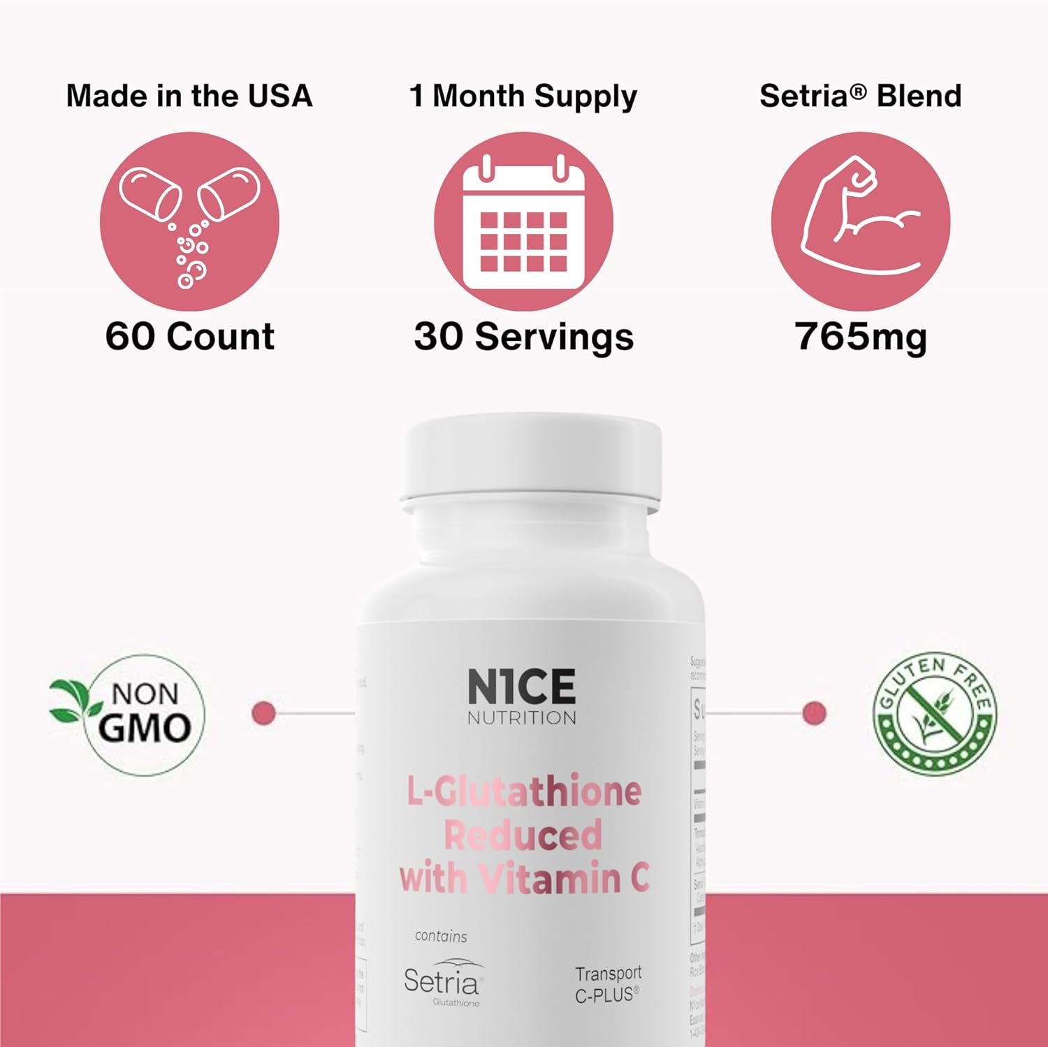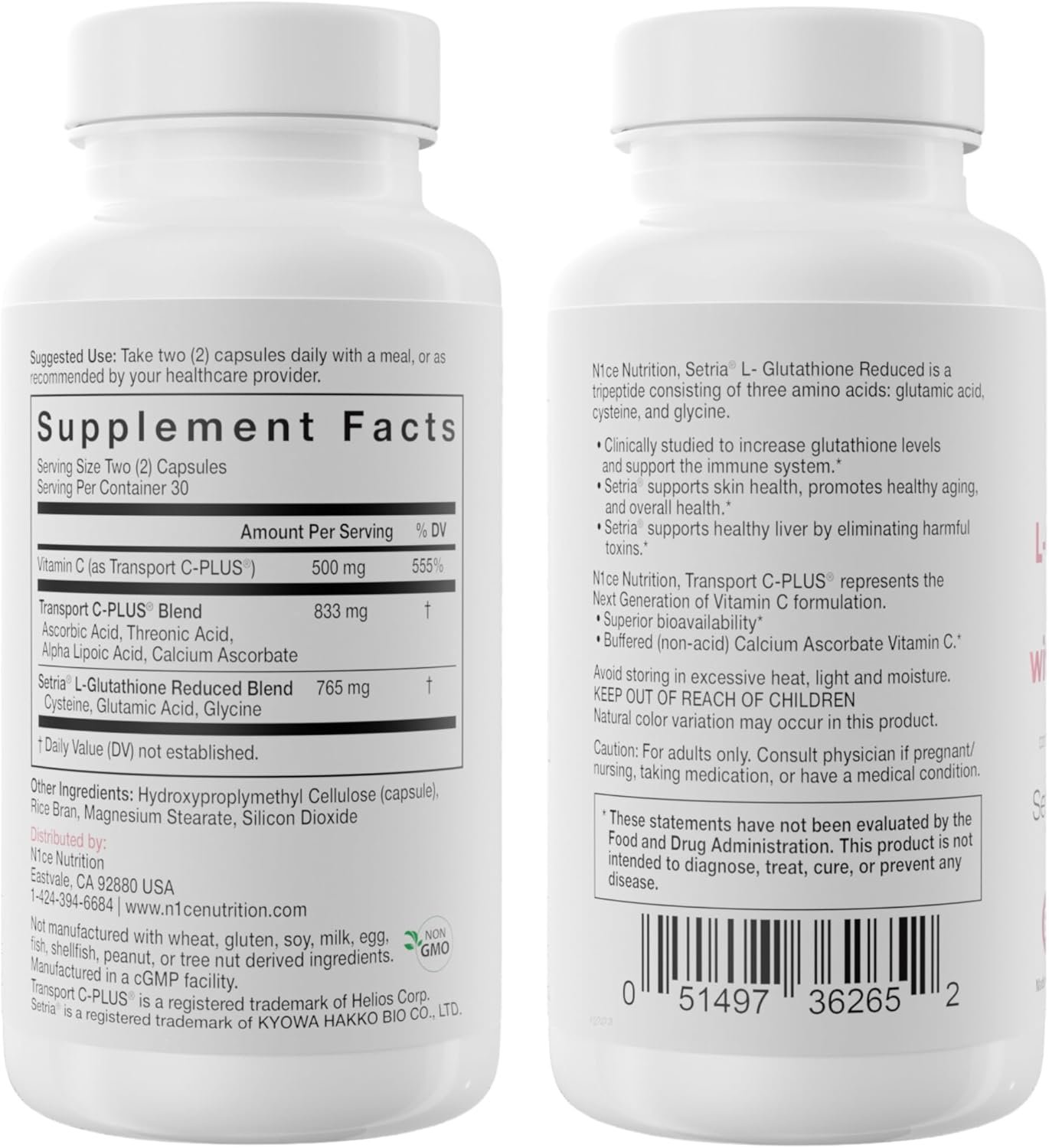 L-Glutathione 765mg with Vitamin C 500mg – Setria® Glutathione – Reduced Form Blend & Transport C-Plus® – Vitamin C – 60 Capsules