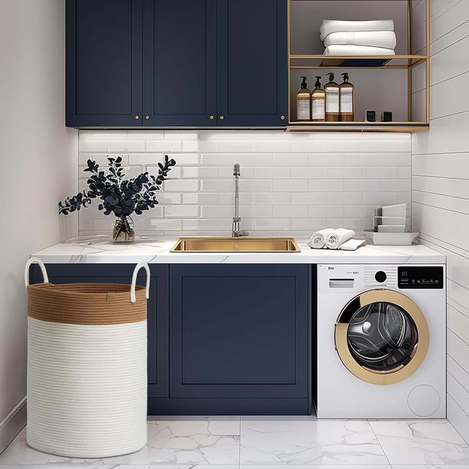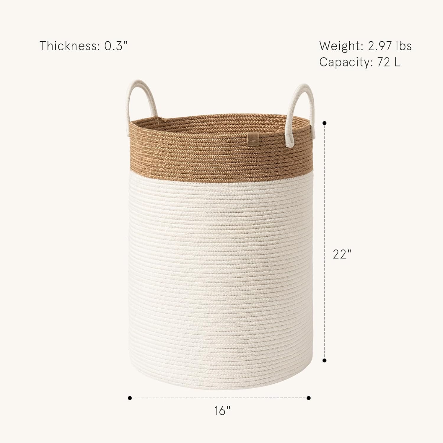 72 LITER JUMBO LAUNDRY BASKET – Size of 16D x 22H inch, Introducing our premium 72L cotton rope laundry basket: Elevate your home organization in style! This exquisite round basket combines robust handles for effortless carrying with luxurious and durable high-quality cotton rope construction. Its elegant design adds sophistication to any room, making it a versatile addition to your home decor.
