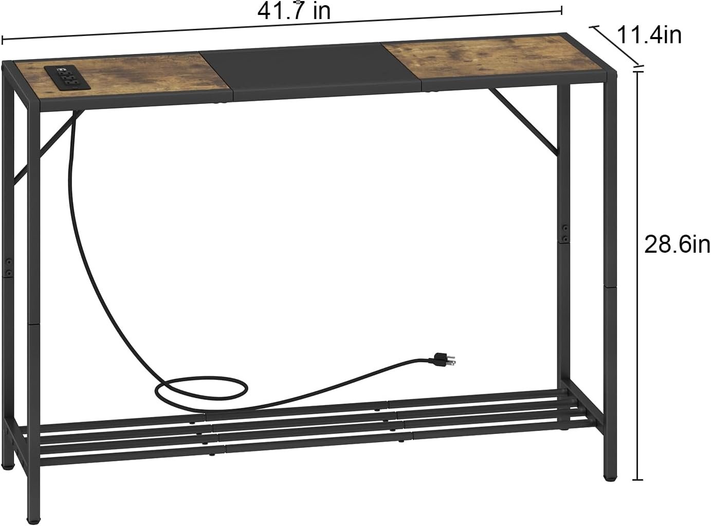 Color Rustic Brown + black Product Size 41.7″L x11.4″W x 28.6″H Style Industrial console table Material Metal, particle board With charging station Yes