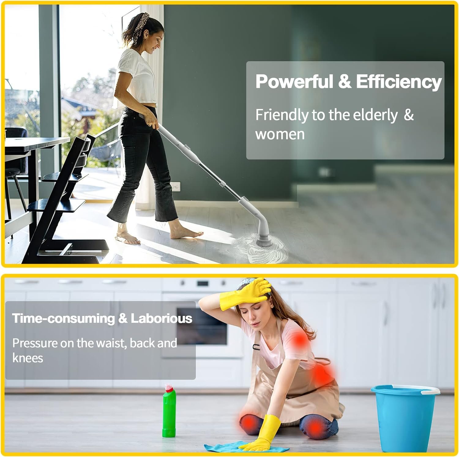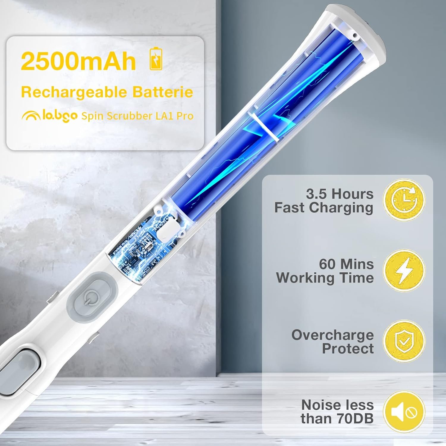 FORGET TIRED CLEANING: LABIGO is designed to make you forget tired cleaning. Its powerful internal motor drives the rotating brush head at up to 380 rpm, making it easy to clean a variety of surfaces such as bathrooms, kitchens, floors, and more with just a gentle push, thoroughly removing stubborn stains.