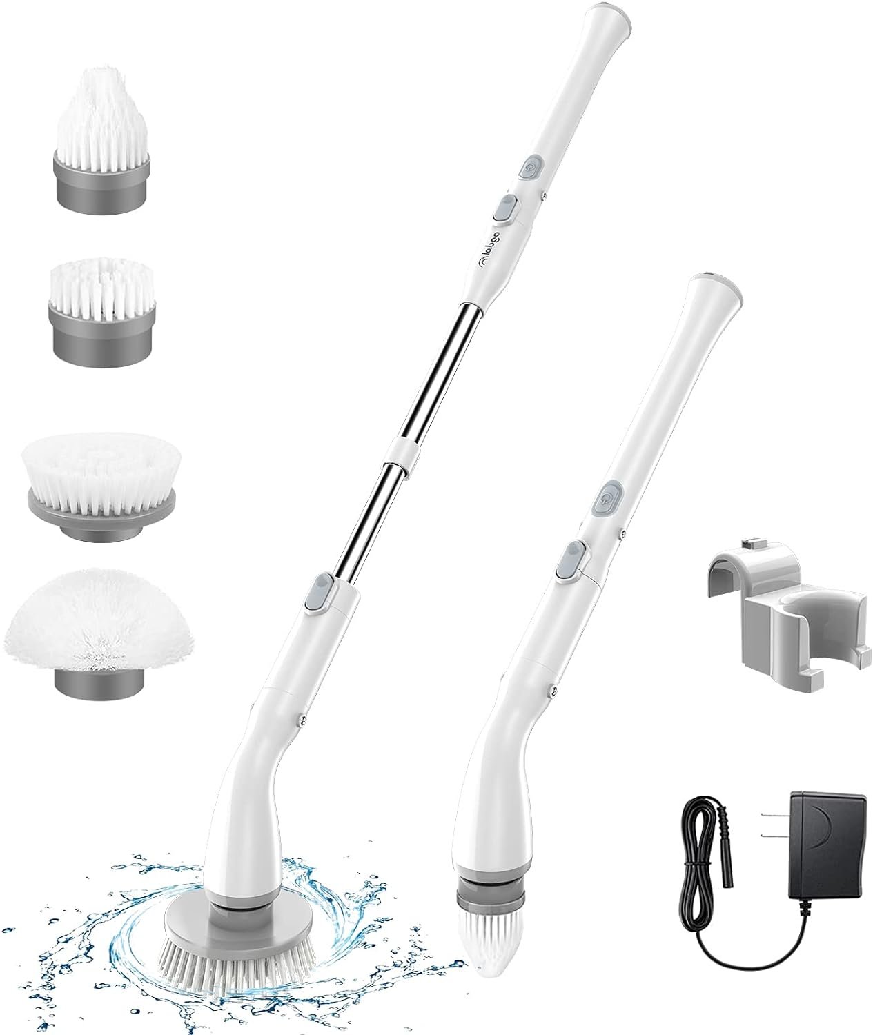 Replaceable Brush Heads and Design Advantages: The LABIGO Wireless Electric Rotating Brush comes with a detachable telescopic metal extension pole and 4 replaceable brush heads suitable for different use cases. The LABIGO electric cleaning brush features a three-part design, including the main unit, handle, and brush head, making it easy to use and store.