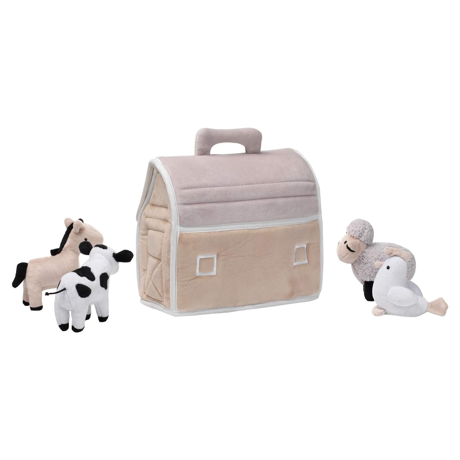 Unique plush barn farmhouse toy with four animal toys