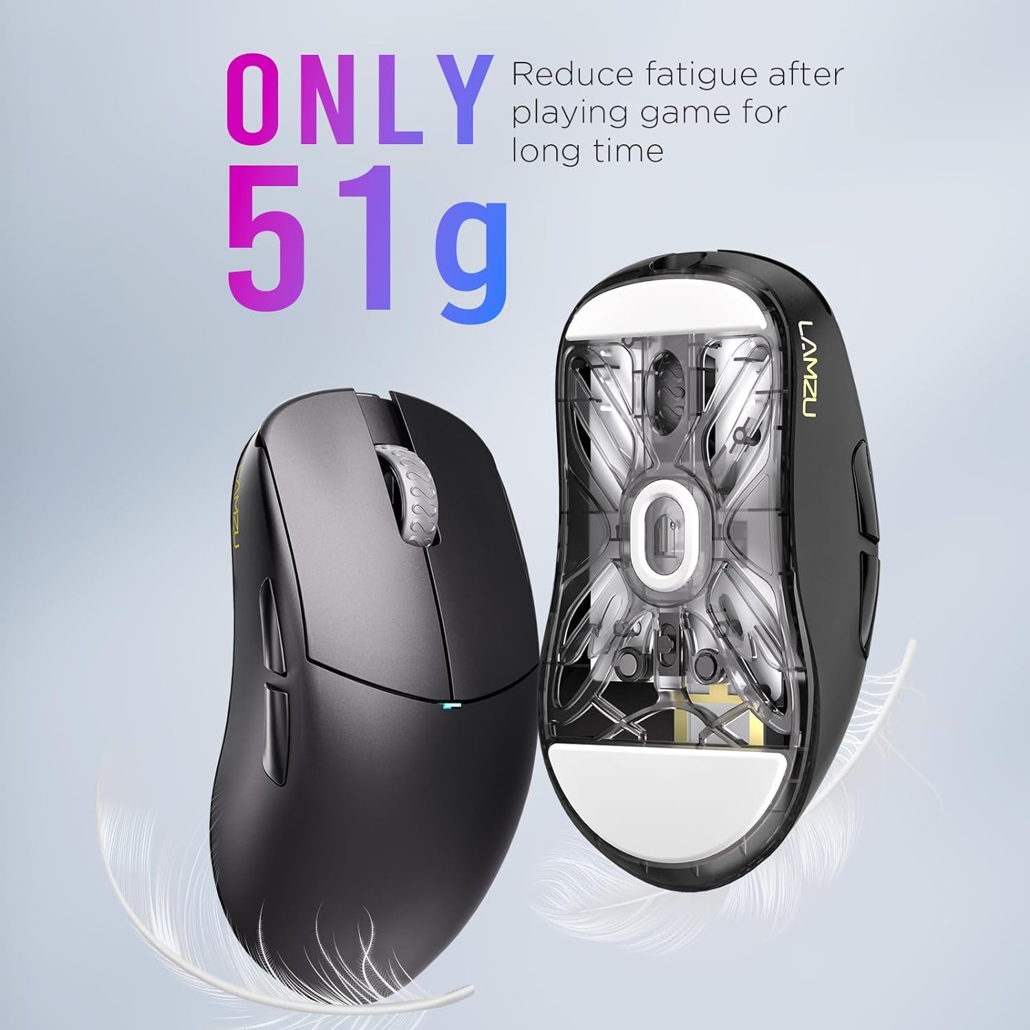 Ultra-lightweight Design: The LAMZU Mini 4K Wireless Gaming Mouse weighs only 57g, reducing the burden on your wrist and alleviating fatigue during use.