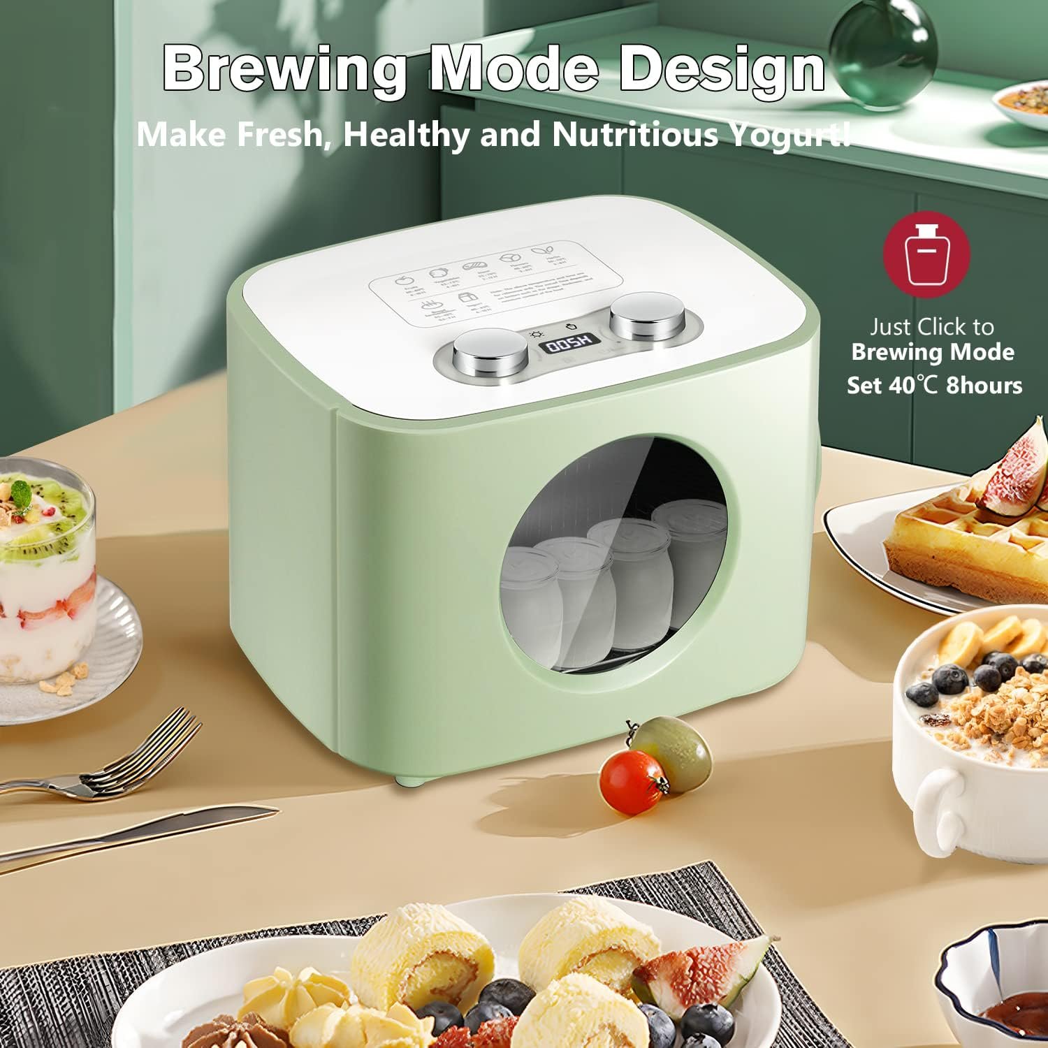 Drying&Brewing Modes – The dehydrator’s default drying mode (default 176℉/80℃, 8h) is for jerky, fruits, vegetables, pet snacks; click “Brewing” and switch to brewing mode (default 91.4℉/33℃, 72h) which is for yogurt, enzyme.