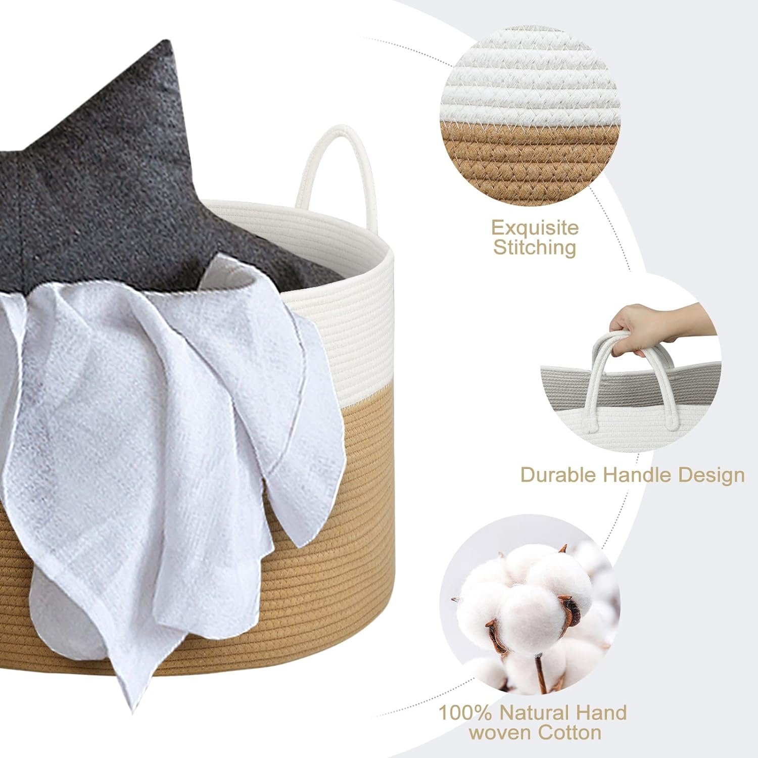 ✔ Thicker and reinforced stitching cotton ropes for sturdier sides and bottom, it can stand on its own.