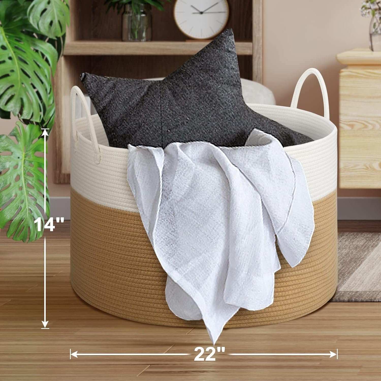 【Large Woven Hamper】This storage basket measures 22 x 22 x 14 inches. This large storage basket is big enough to store bulky items like extra blankets, duvets, throw pillows, cushions, stuffed animals, winter clothing, laundry, and more. It offers plenty of space for smaller miscellaneous items too, like books, magazines, to keep your living space neat and tidy!