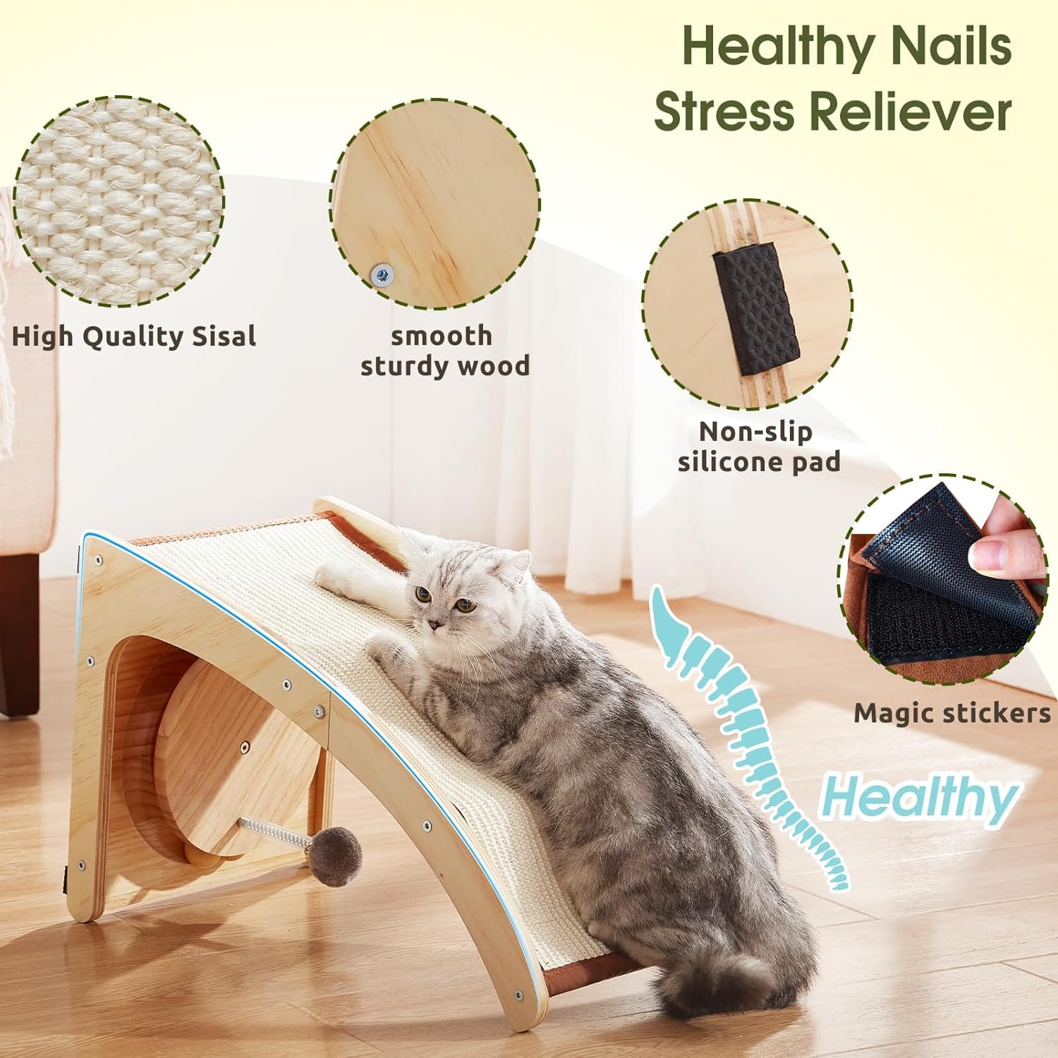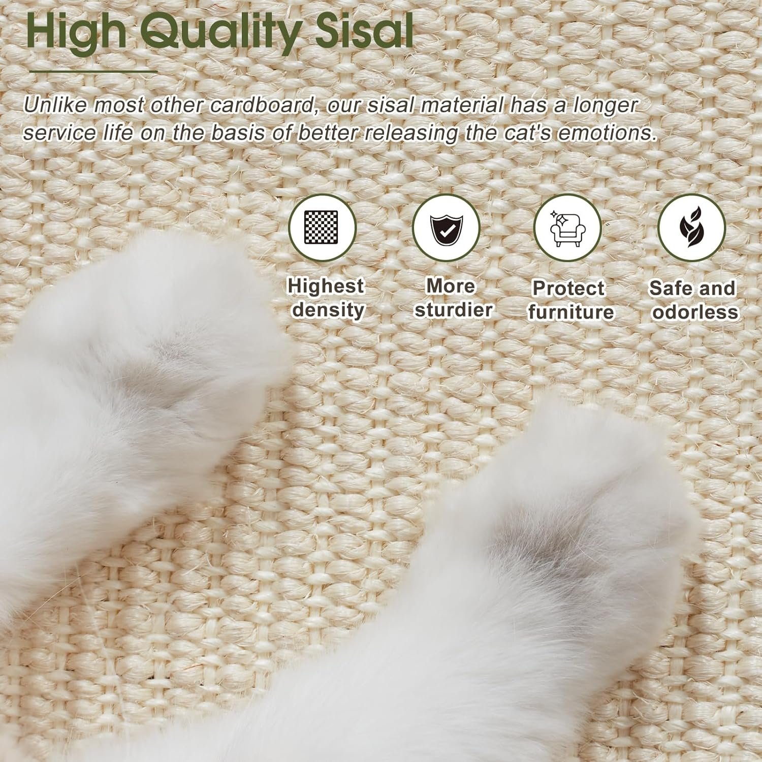 Eco-Friendly and Durable: The sisal cat scratcher is made of natural pine and sisal materials. The high-quality material and structure make the cat scratching pad sturdy and safe enough to satisfy the cat’s long-term scratching behavior, and it does not shed crumbs and will not fall over easily. It is 80% more durable than ordinary cat scratching boards. The cat scratcher for indoor cats can be used for both vertical and horizontal scratching.