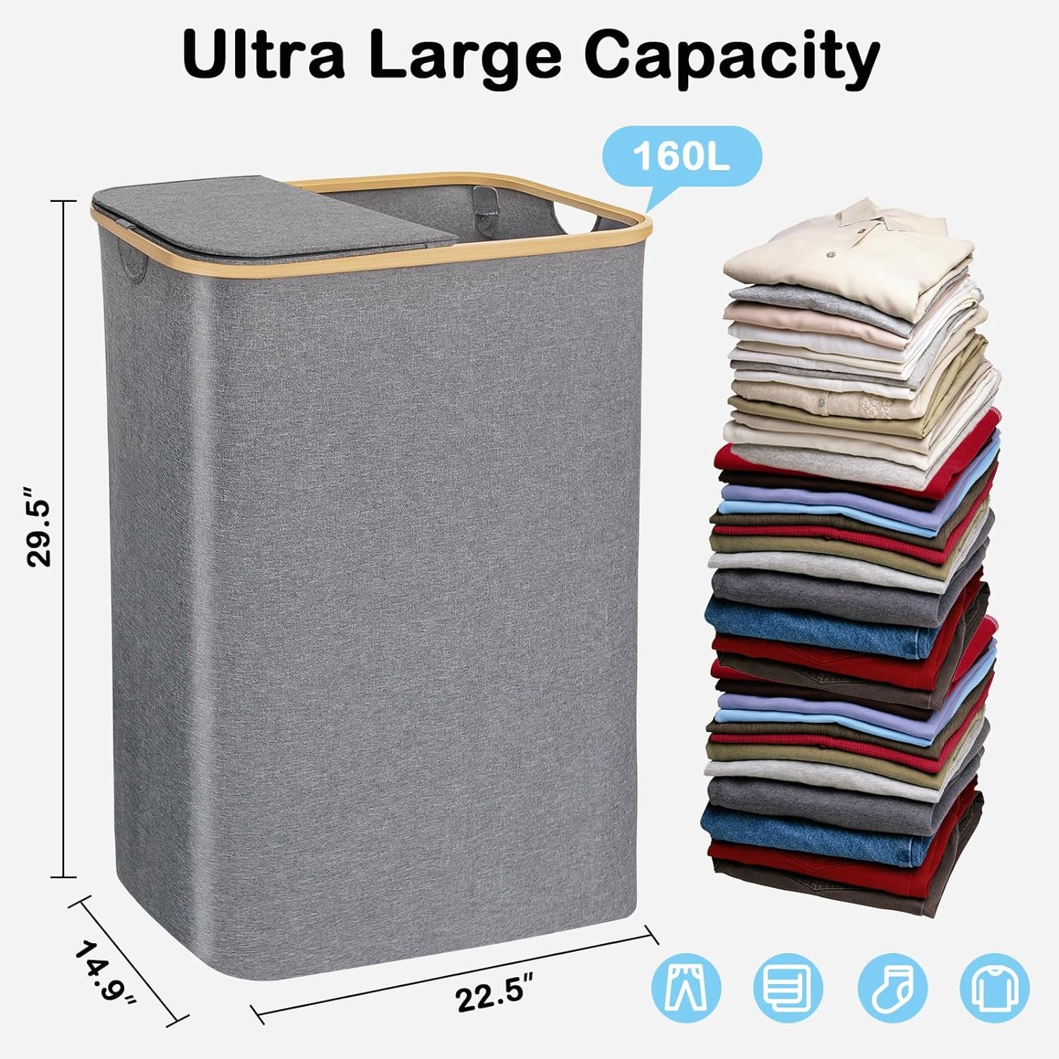 160L large laundry basket with lid and bamboo handle can meet all your needs