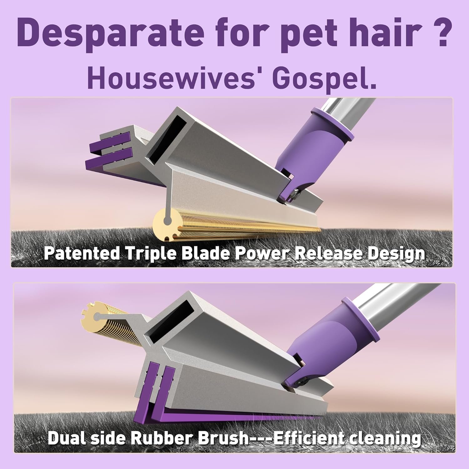1. A pet hair remover, Dogs & Cats hair broom especially designed for pet families: We designed it exclusively for furkids owners.Which is suitable for stair carpets, rugs; It can also be good for smooth glass, floor,ceiling. Desparate for pet hair?Housewives’ Gospel.