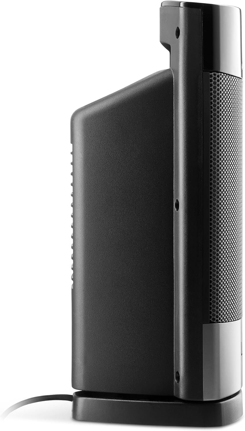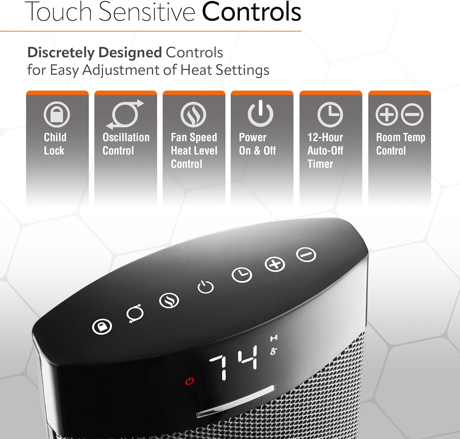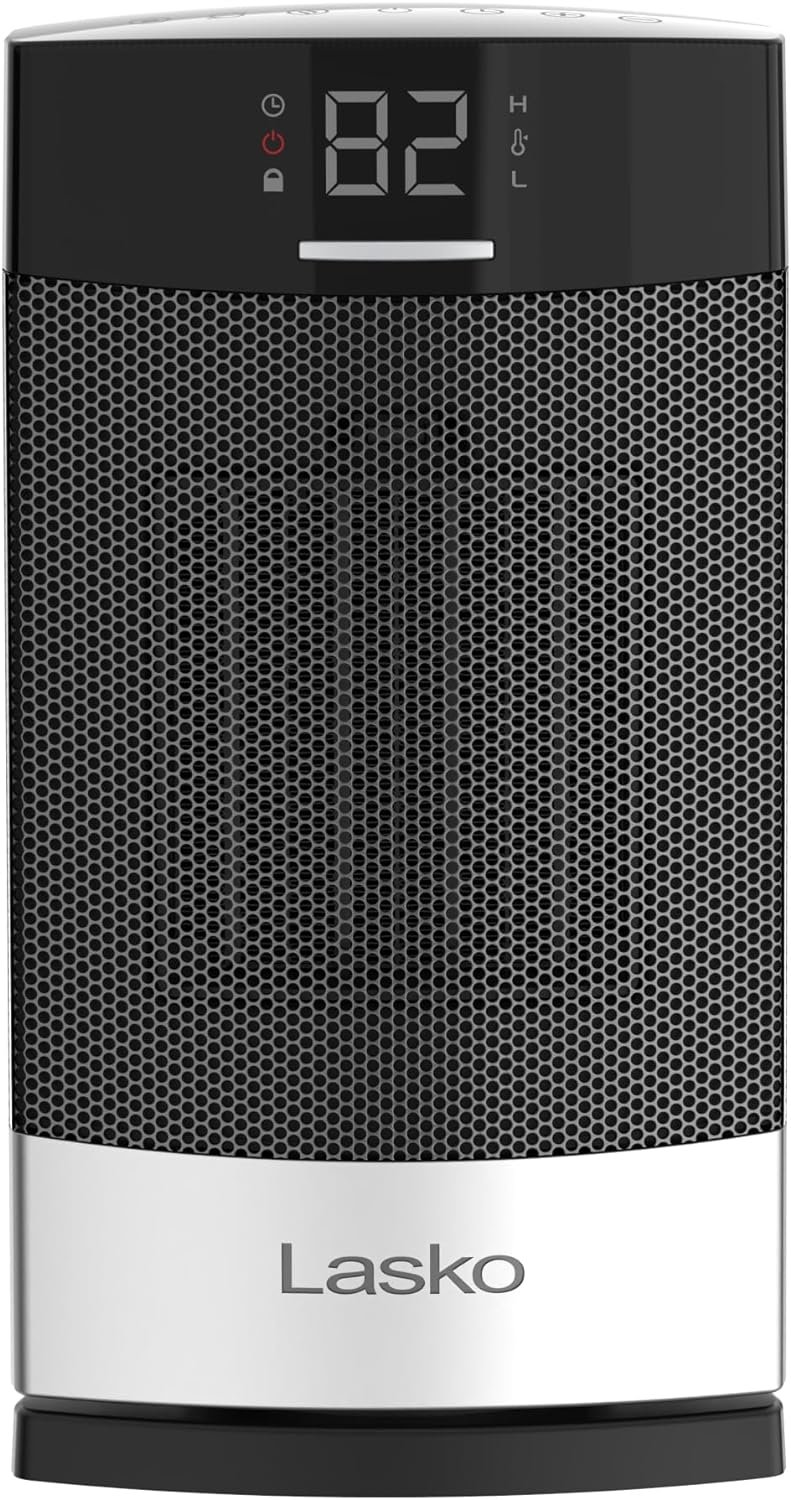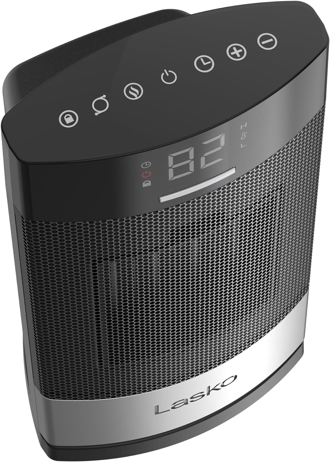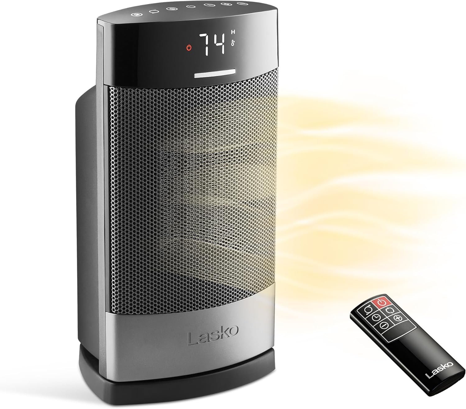 Introducing the Lasko Ellipse Ceramic Heater with Remote Control – the perfect solution for all your personal heating needs! With 1500-Watts of comforting warmth, this heater is designed to provide you with maximum heating efficiency, while remaining quiet at <40dB. Thanks to its wider grill and widespread oscillation, this personal heater ensures optimal heat distribution in your space, making it perfect for your home or office. The ceramic insert plug, cool touch housing, child lock, and tip-over sensor provide additional safety, so you can enjoy your cozy space with peace of mind. Controlling your personal space heater has never been easier! With touch sensing controls and a digital display, you can easily adjust the temperature and set the 12-hour auto-off timer in 30-minute increments up to 2 hours, and then in 1-hour increments up to 12 hours. Plus, the AutoEco thermostat maintains your desired room temperature with less energy. Take control of your personal space heating with the multi-function remote control that operates all heater functions from a distance. And, thanks to the built-in handle, you can easily move the heater from room to room for maximum portability. The Lasko Ellipse Ceramic Heater comes fully assembled and is backed by a 3-year limited warranty. Don't wait any longer - experience the ultimate in personal heating comfort with Lasko.