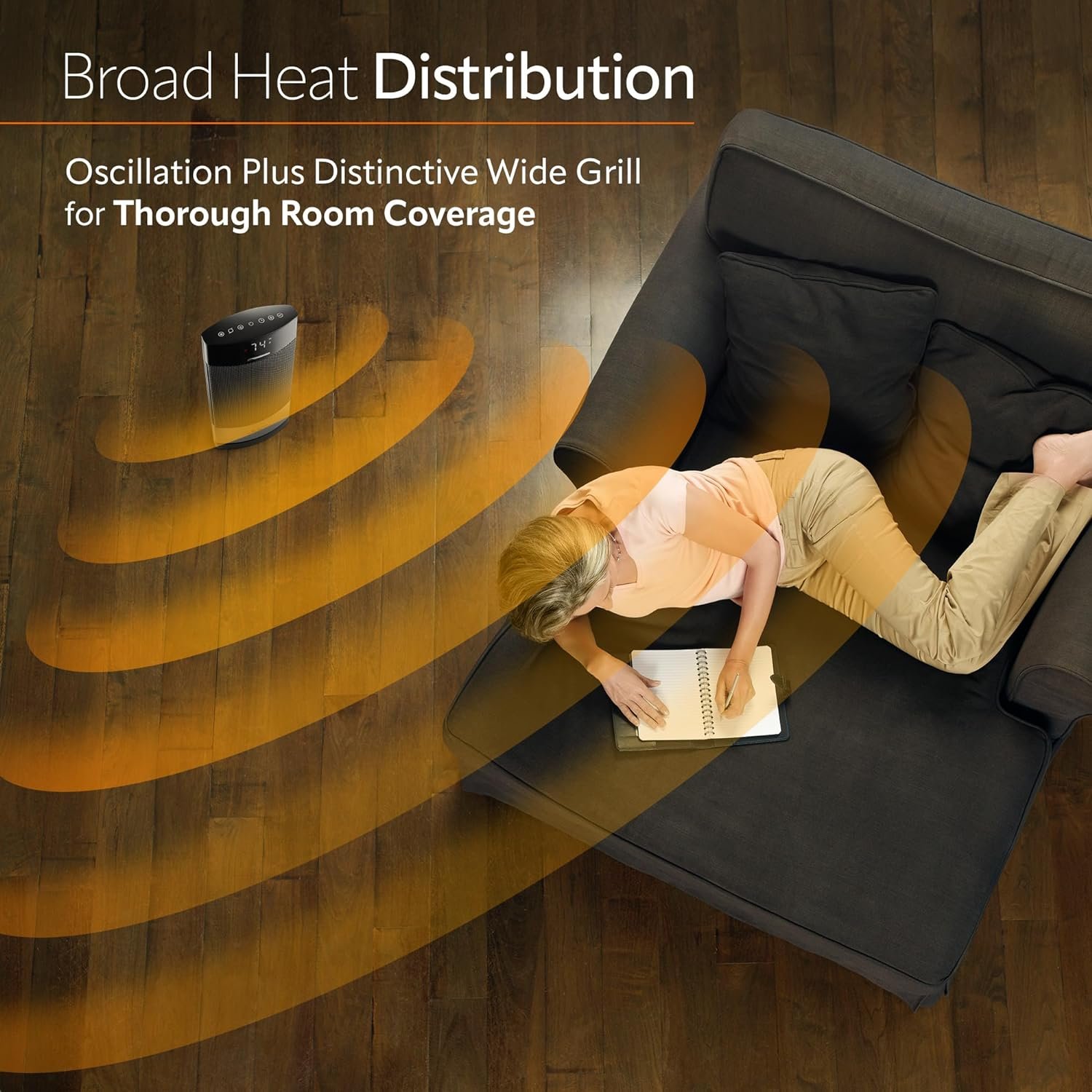 ✅【120° HEAT DISTRIBUTION】The Ellipse Space heater is ideal for medium sized rooms, it features a wider grill and widespread oscillation, allowing for 120° degree heat distribution throughout your room. This personal heater is perfect for the home office, bedroom or living room