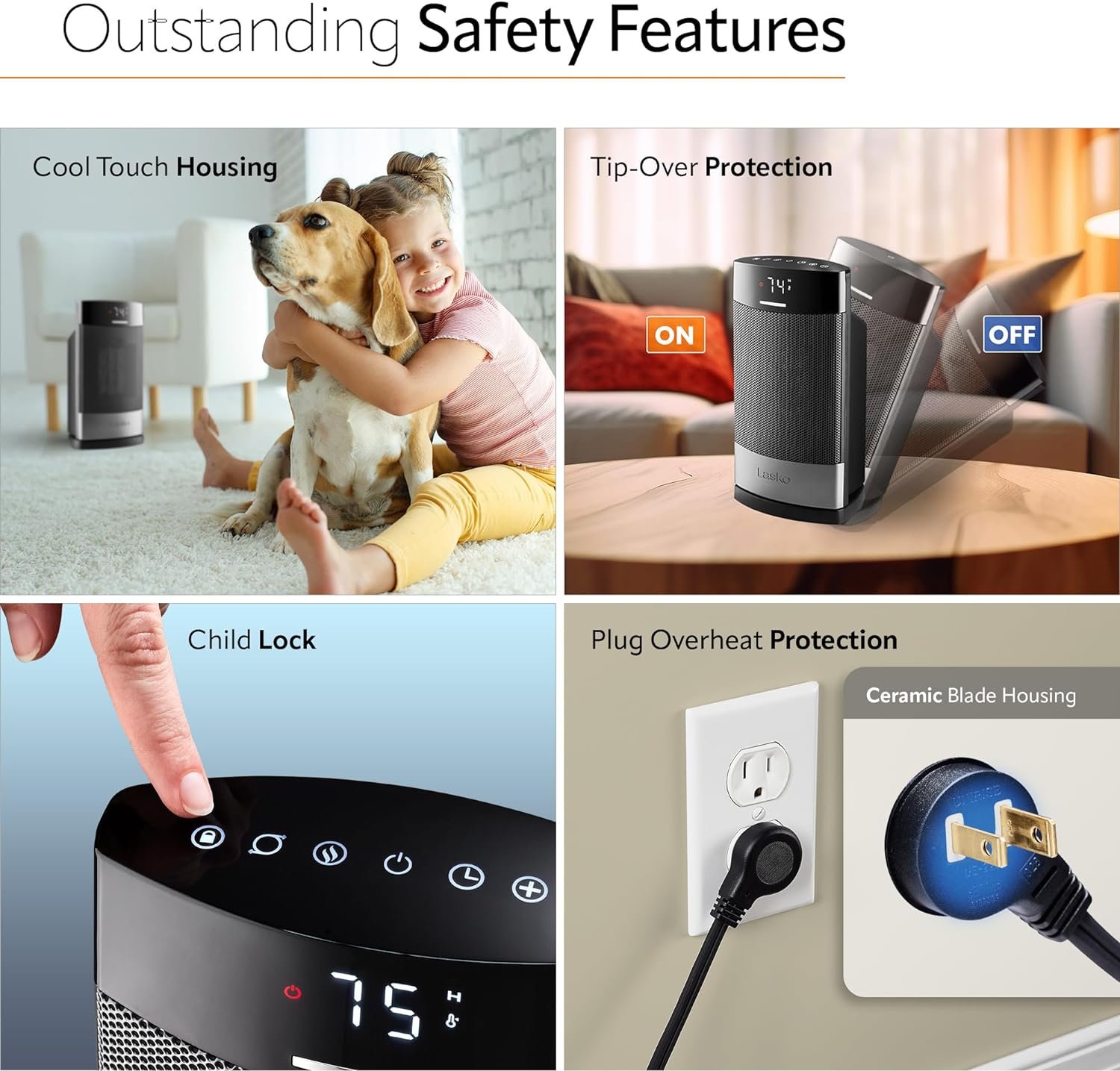 ✅【BRILLIANTLY DESIGNED】Lasko’s newest sleek wide curved design space heater offers excellent heat distribution along with safety features like a ceramic insert plug to prevent overheating, a tip-over sensor, a child lock, and cool touch housing so you can enjoy your cozy space with peace of mind