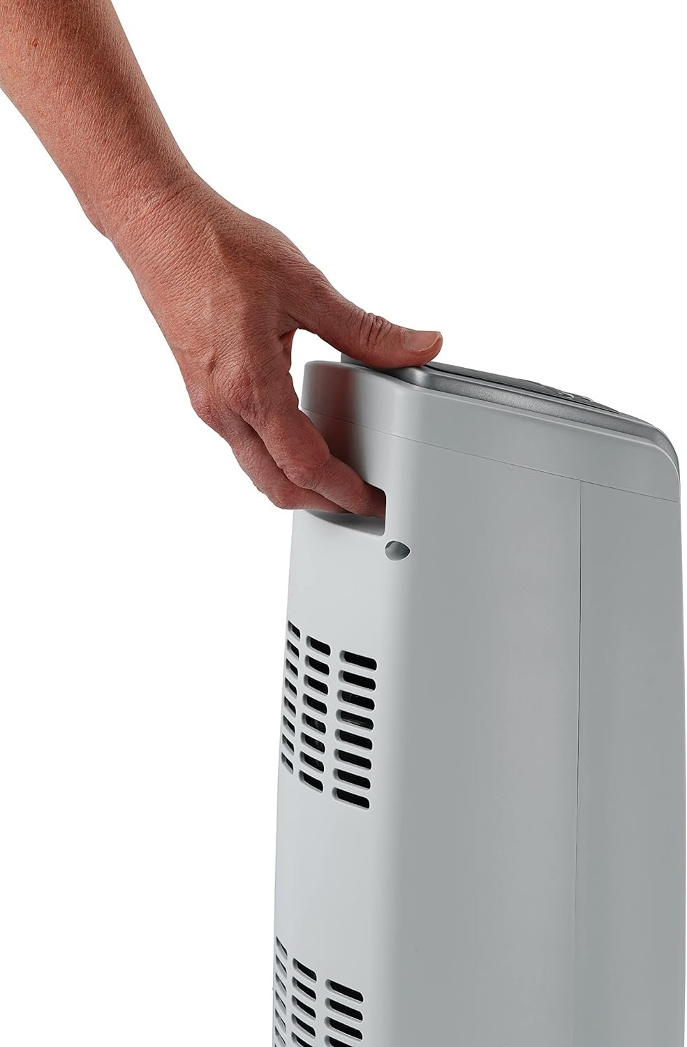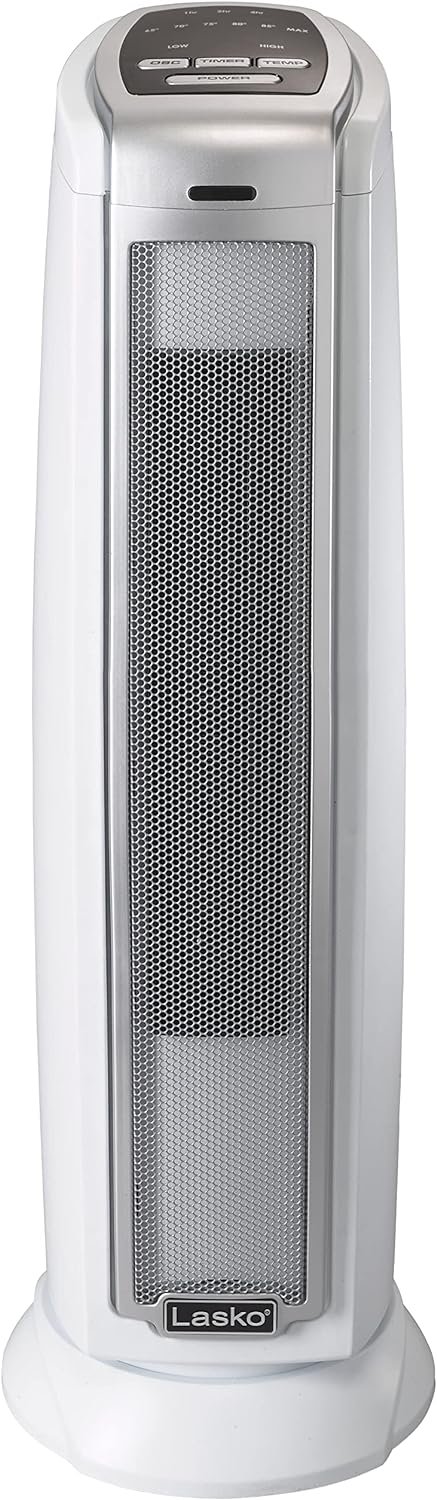 This ceramic tower heater from Lasko adds quick warmth to your den, bedroom or home office. Turn down the whole-house thermostat and warm just the room you’re in with this powerful space heater. The patented comfort system projects 1500 watts of comforting heat into the space, while the compact size and built-in carry handle allow you to easily transport from room-to-room. Features include 7-hour auto-off timer, 2 heat settings, and thermostat function. Equipped with built-in safety features, including automatic overheat protection, safe ceramic element, and cool-to-the-touch housing. Comes fully-assembled with a 3-year limited warranty.