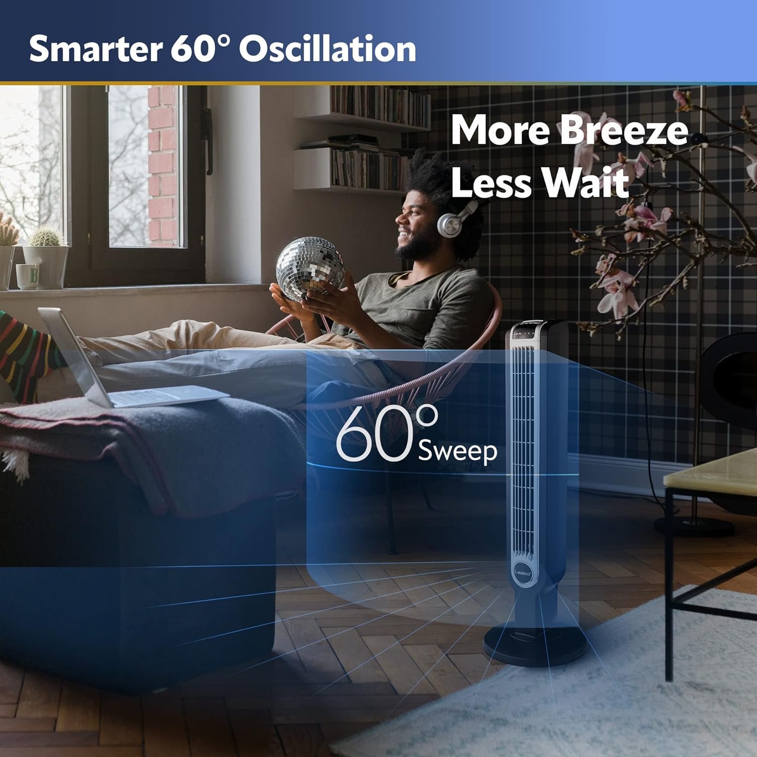 Widespread Oscillation: Allows you to direct airflow where you need. Turn on oscillation and the fan will gently direct air side to side, allowing the air to distribute and cool the room.