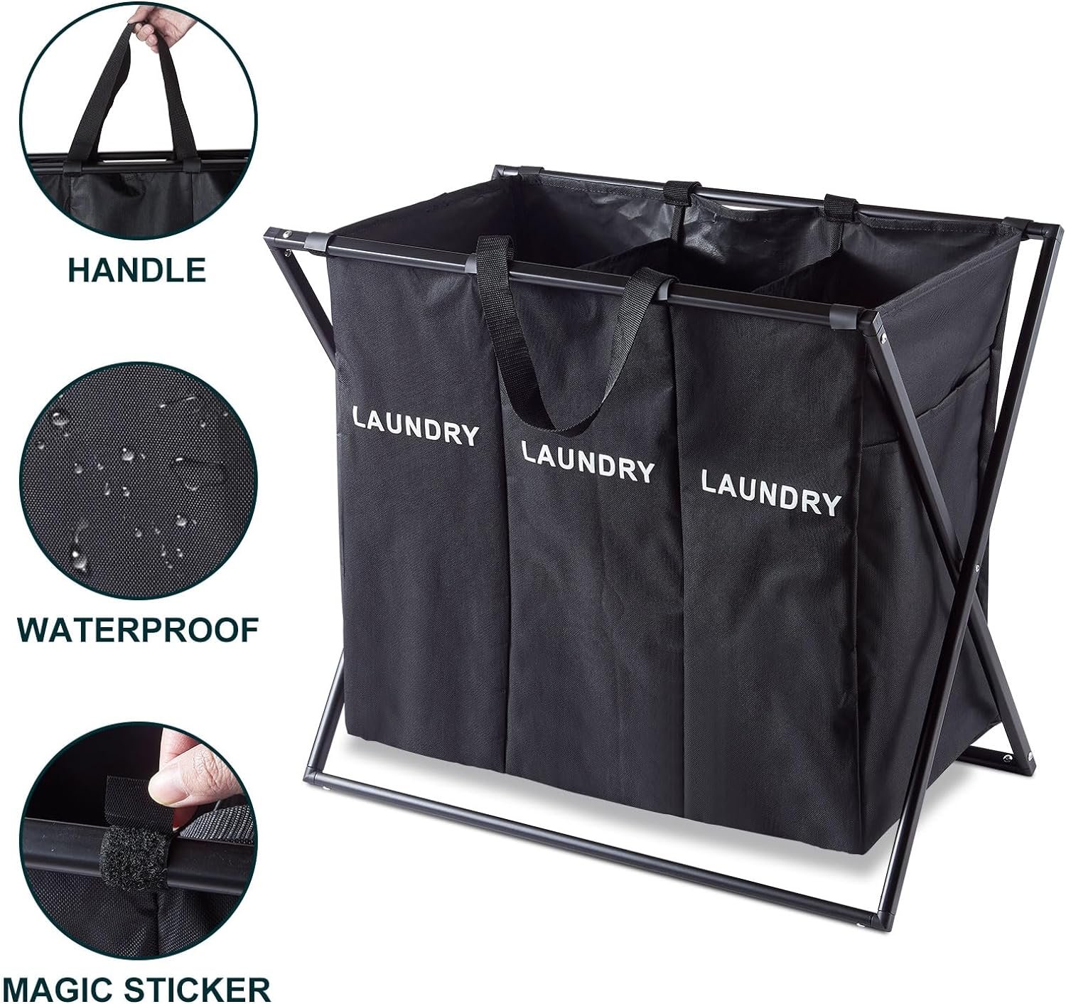 【3-Section Sorting】Experience ultimate convenience with our waterproof laundry sorter featuring a 3-section design for easy sorting of dark, light, and colored clothes. It can also hold blanket ,dirty clothes, yoga mats, dog toys ,pillow, children’s toys, towels, etc.