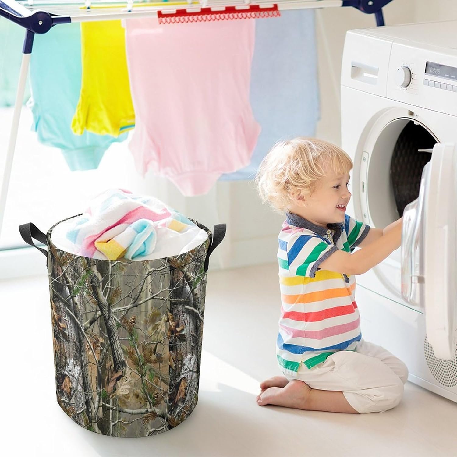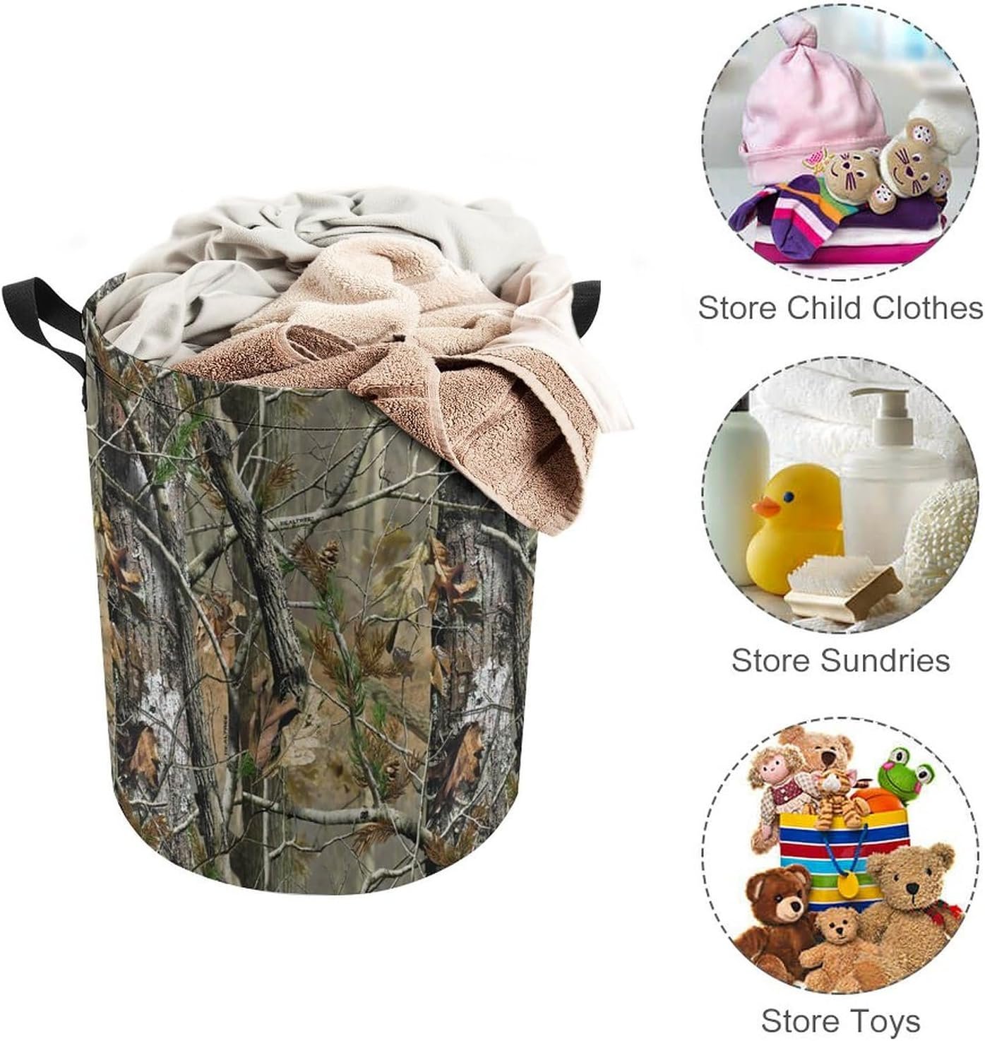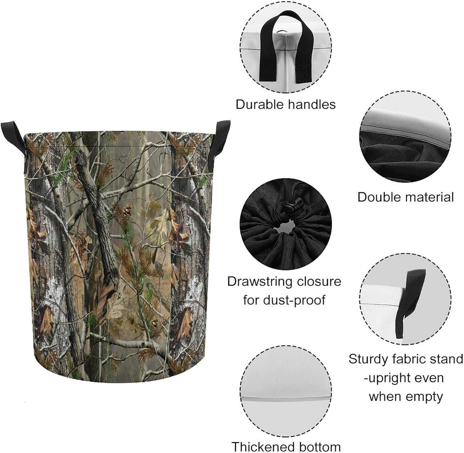 Laundry Basket – Hunting Camo Laundry Hamper Round Collapsible Drawstring Clothes Hamper for Bedroom