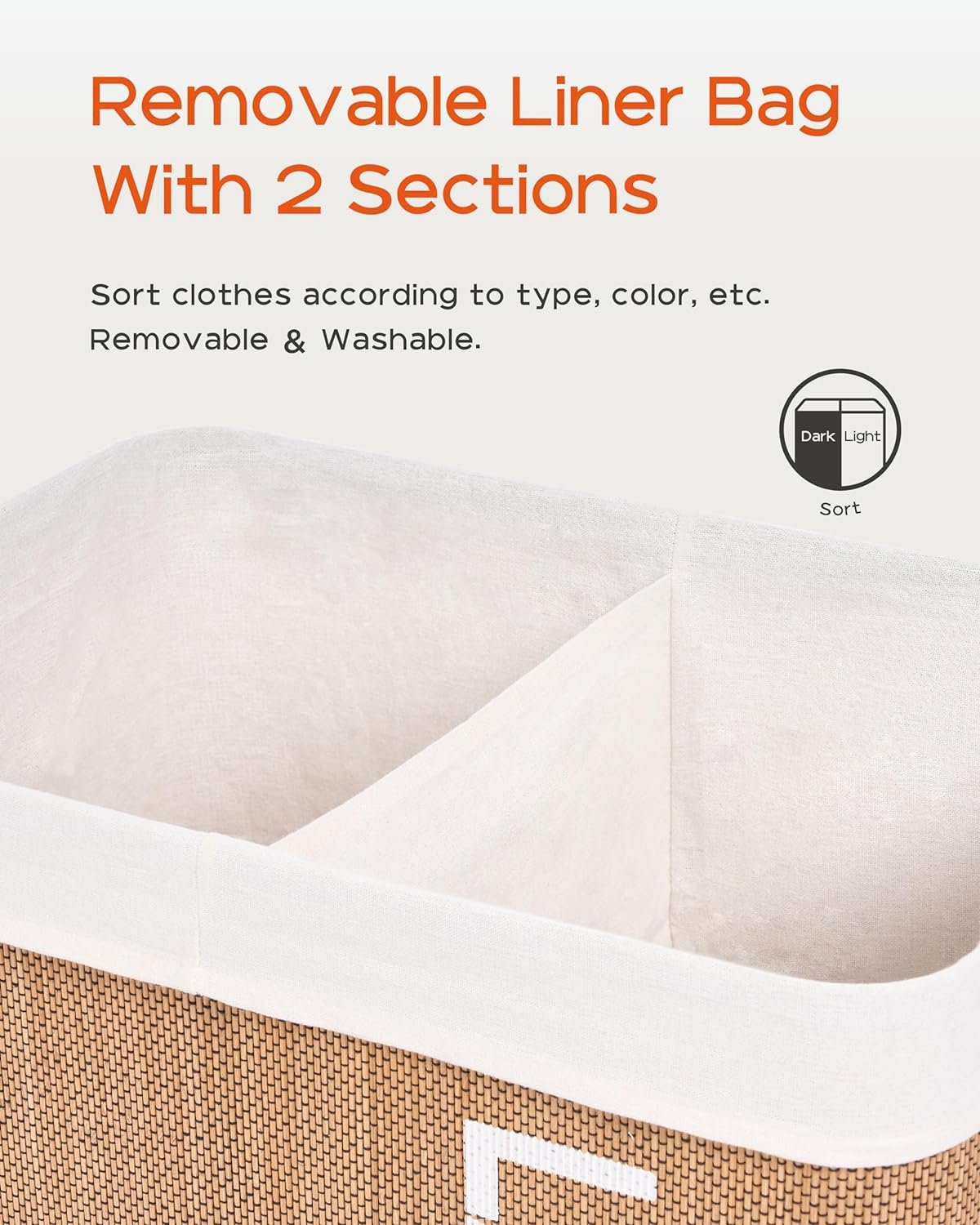 [Removable and Washable Liner Bag] This hamper equipped with a removable inner bag for easy carry and separation from the hamper. The liner is made of soft and breathable poly-cotton blend fabric, washable with machine.