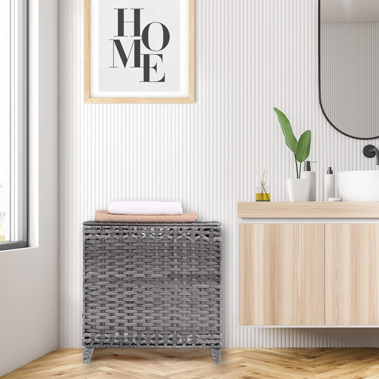 Be the first to review “Laundry Hamper with 3 Removable Liner Bags; 132L Handwoven Rattan Laundry Basket with Lid & Heightened Feet; Clothes Hamper with Side Handles; Laundry Sorter with 3 Separate Sections (Gray)”