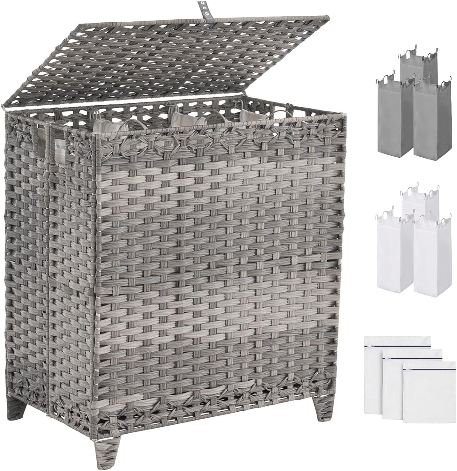 1 x laundry Basket with Lid, 6 Removable Liner Bags & 3 Mesh Laundry Bags, 1 x Instructions 1 x laundry Basket with Lid, 6 Removable Liner Bags & 3 Mesh Laundry Bags, 1 x Instructions 1 x laundry Basket with Lid, 6 Removable Liner Bags & 3 Mesh Laundry Bags, 1 x Instructions 1 x laundry Basket with Wheels, 3 Removable Liner Bags & 3 Mesh Laundry Bags, 1 x Instructions 1 x Hamper with Bamboo Lid and Rolling Lockable Wheels, 2 x removable liner bag(White & Black) , 1 x Instructions, 1 x Accessories Bag 1 x laundry Basket with Wheels, 2 Removable Liner Bags & 3 Mesh Laundry Bags, 1 x Instructions