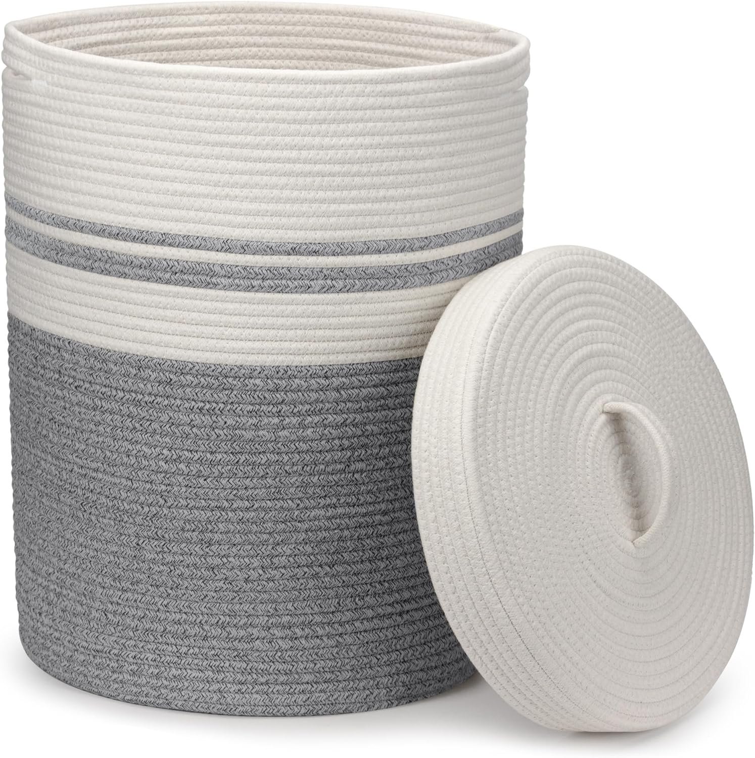 Size:14.6″Dx20.5″H. Large, Washable & Foldable Cotton Rope Hamper for Bedrooms, Laundry, and More.