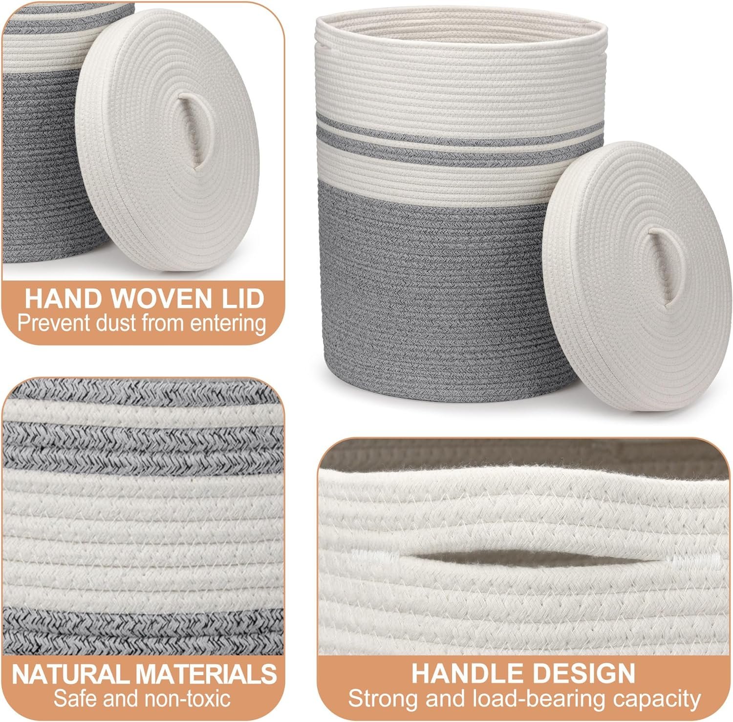 Elegant Cotton Rope Construction: Crafted from pure natural materials, our woven basket with lid boasts a timeless design that adds a touch of rustic elegance to any room. The cotton rope construction ensures durability and a unique texture that complements various interior styles.