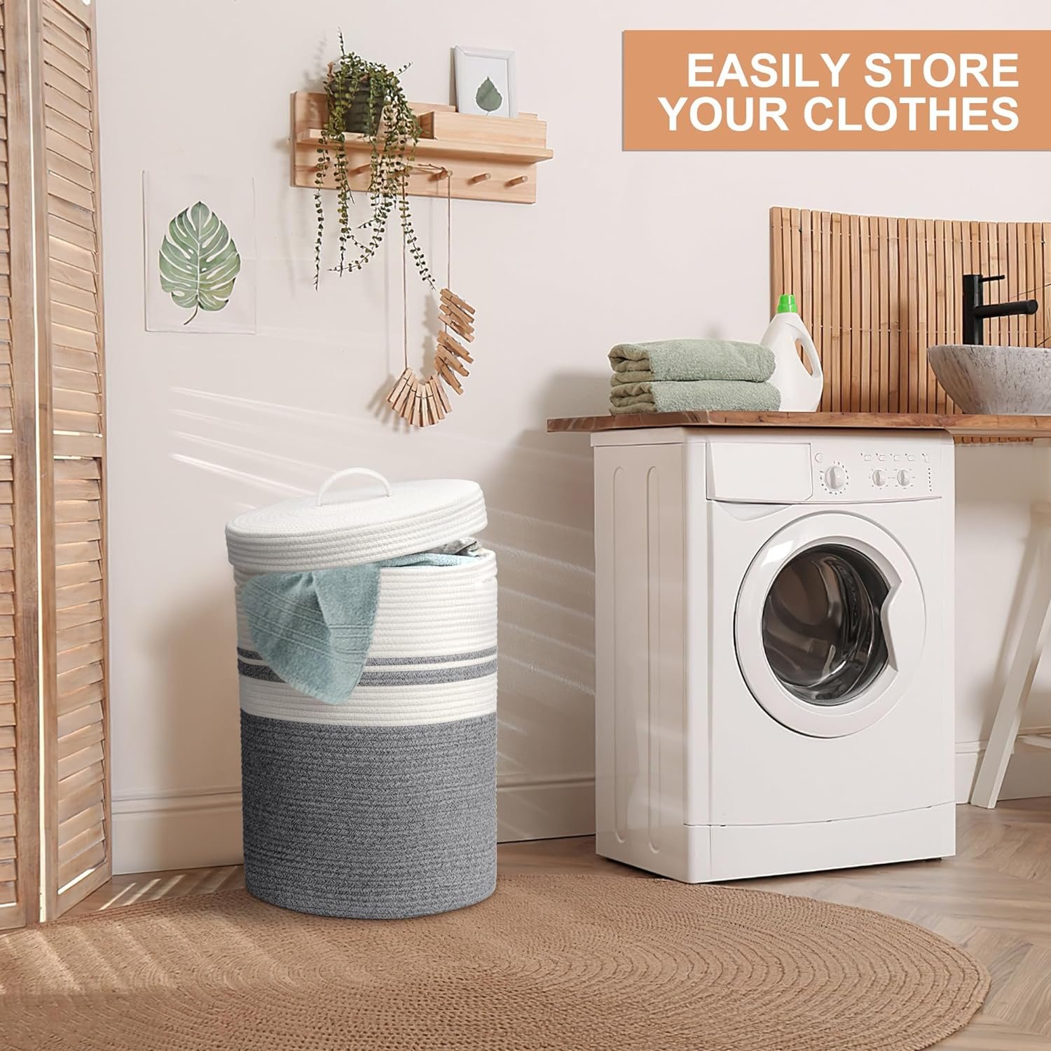 Functional Lid for Neatness: The included lid not only conceals your laundry and belongings but also adds to the decorative appeal of the basket. Keep your space looking neat and tidy while maintaining a sophisticated look.