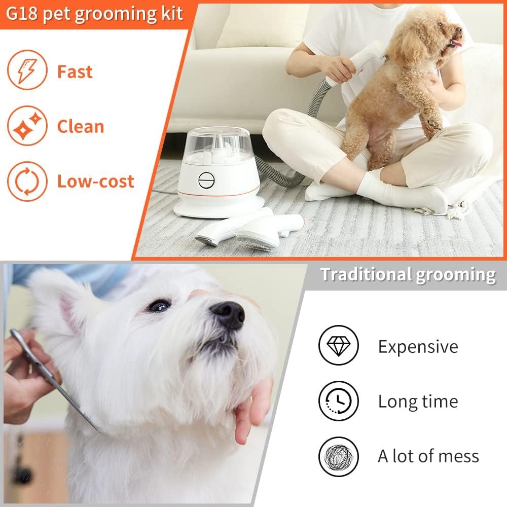 【Easy to operate & maintain】The dust container can be easily removed and emptied. Compared to the long process of making the appointment and high cost for professional grooming service, this pet vacuum grooming kit gets things done much more convenient. Save money and enjoy more time with your furry friends.