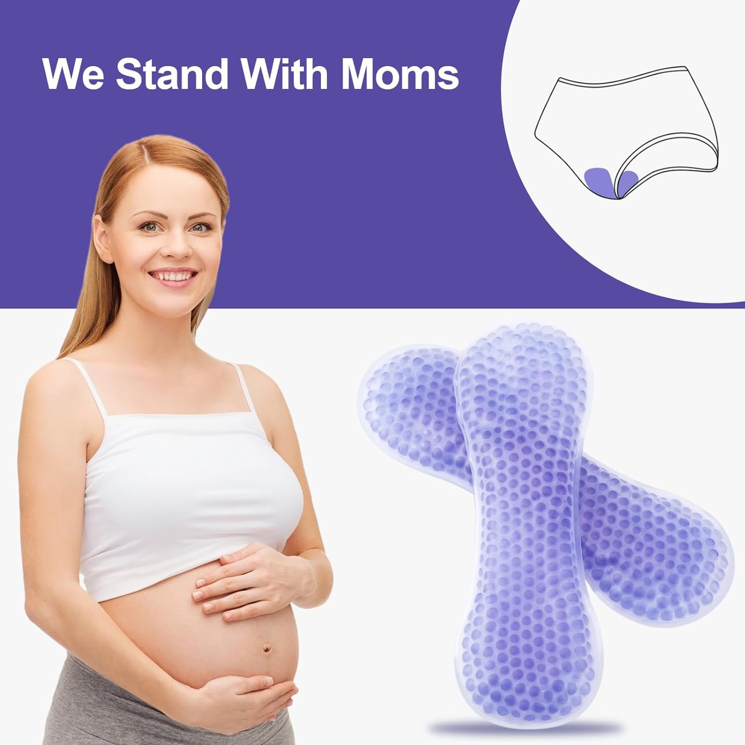 HOT AND COLD PERINEAL PAIN RELIEF PACKS WITH POUCHES : These slender, pliable pads are designed to fit comfortably in your underwear, offering relief from perineal discomfort and hemorrhoids. They can also be used to alleviate postpartum uterine cramps