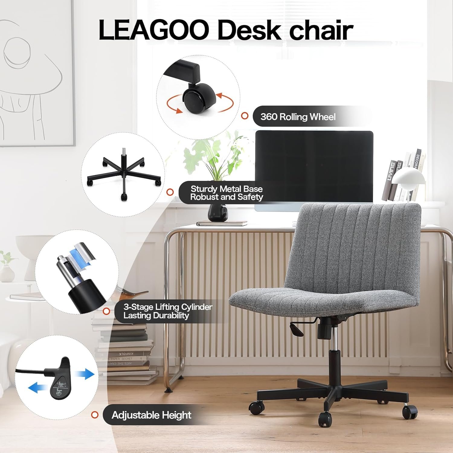 Be the first to review “LEAGOO Cross Legged Office Chair, Armless Wide Desk Chair with Wheels, 120° Rocking Mid Back Ergonomic Computer Task Vanity Chairs with Height adiust, for Home, Office, Make up, Small Space, Dark gray”