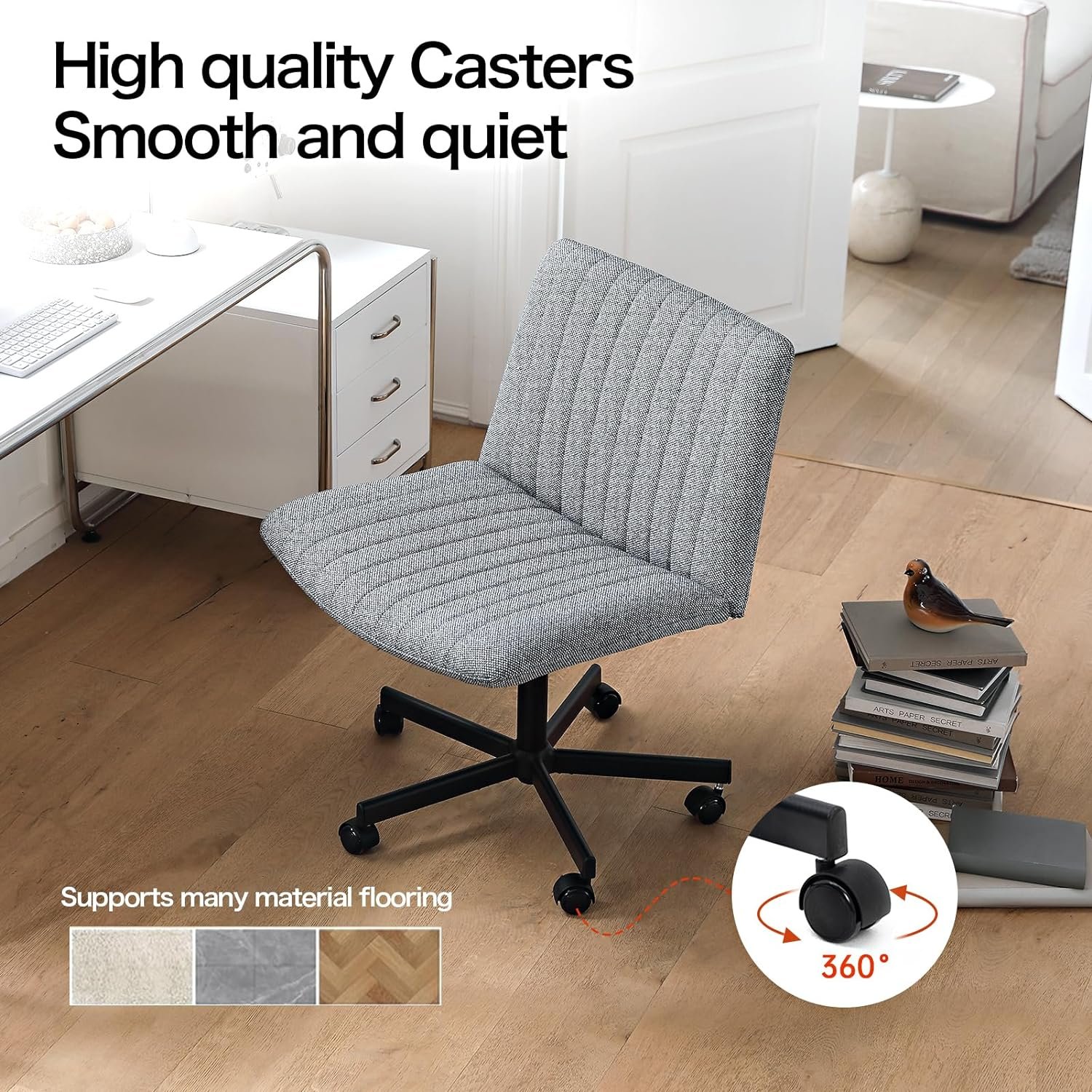 🔥【BIONIC DESIGN】 -Armless desk chair with Imitation shell curved backrest and seat, U-shaped design gradually releases the back and hip pressure from the middle to the sides, ensuring a correct sitting posture and providing strong support for your back. Vertical independent high-density sponge bag with exquisite sewing craftsmanship maximizes the comfortable.