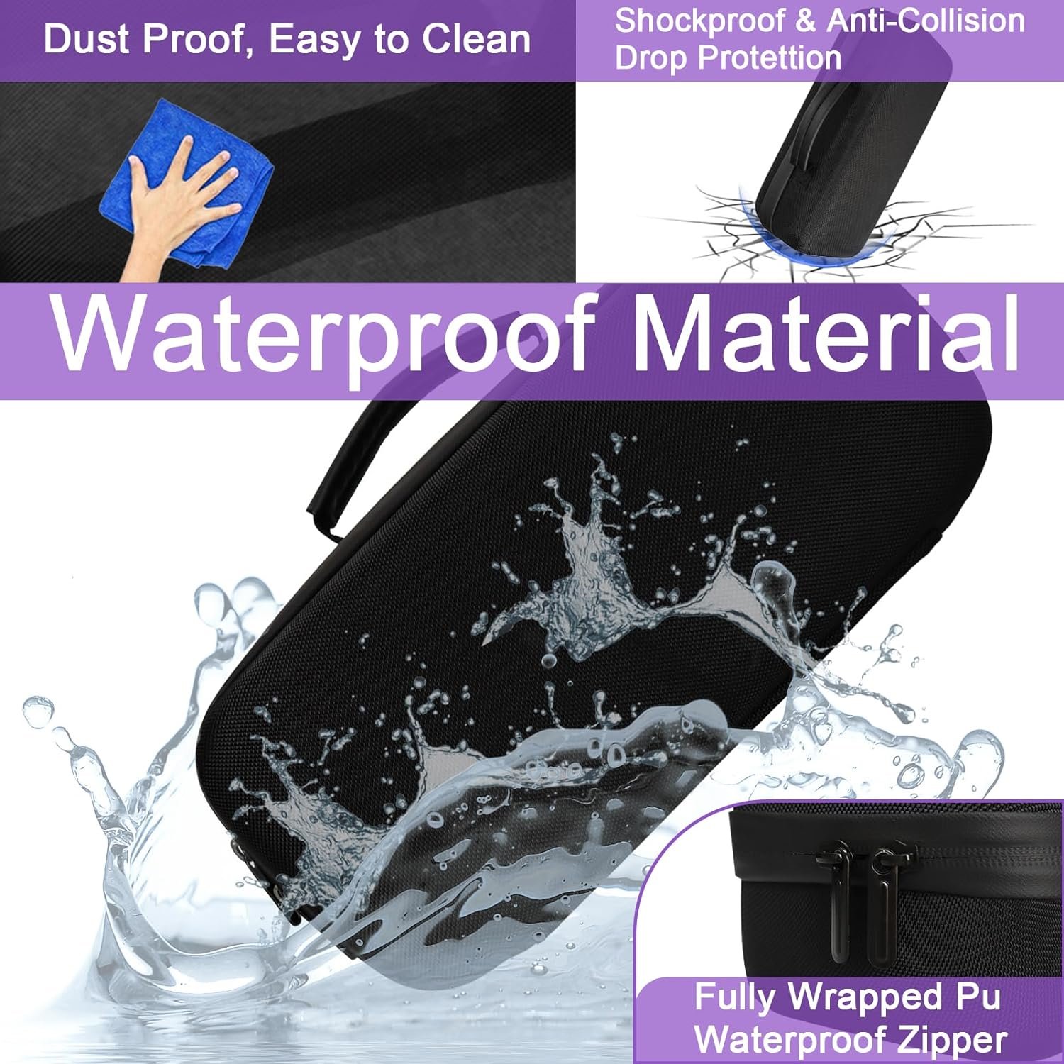 —–High quality hidden double zipper for smooth movement and prevents accessories from falling out,the zipper is wrapped in PU material, fully waterproof.