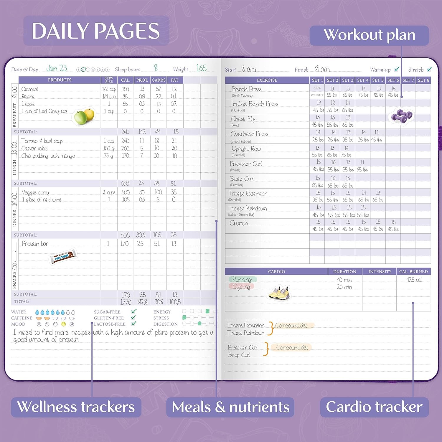 The ultimate planner for tracking your nutrition and fitness progress Detailed daily wellness tracking to reach your health goals Super compact to slip in your bag and monitor your wellness on the go Blank cookbook to keep all of your favorite recipes on hand