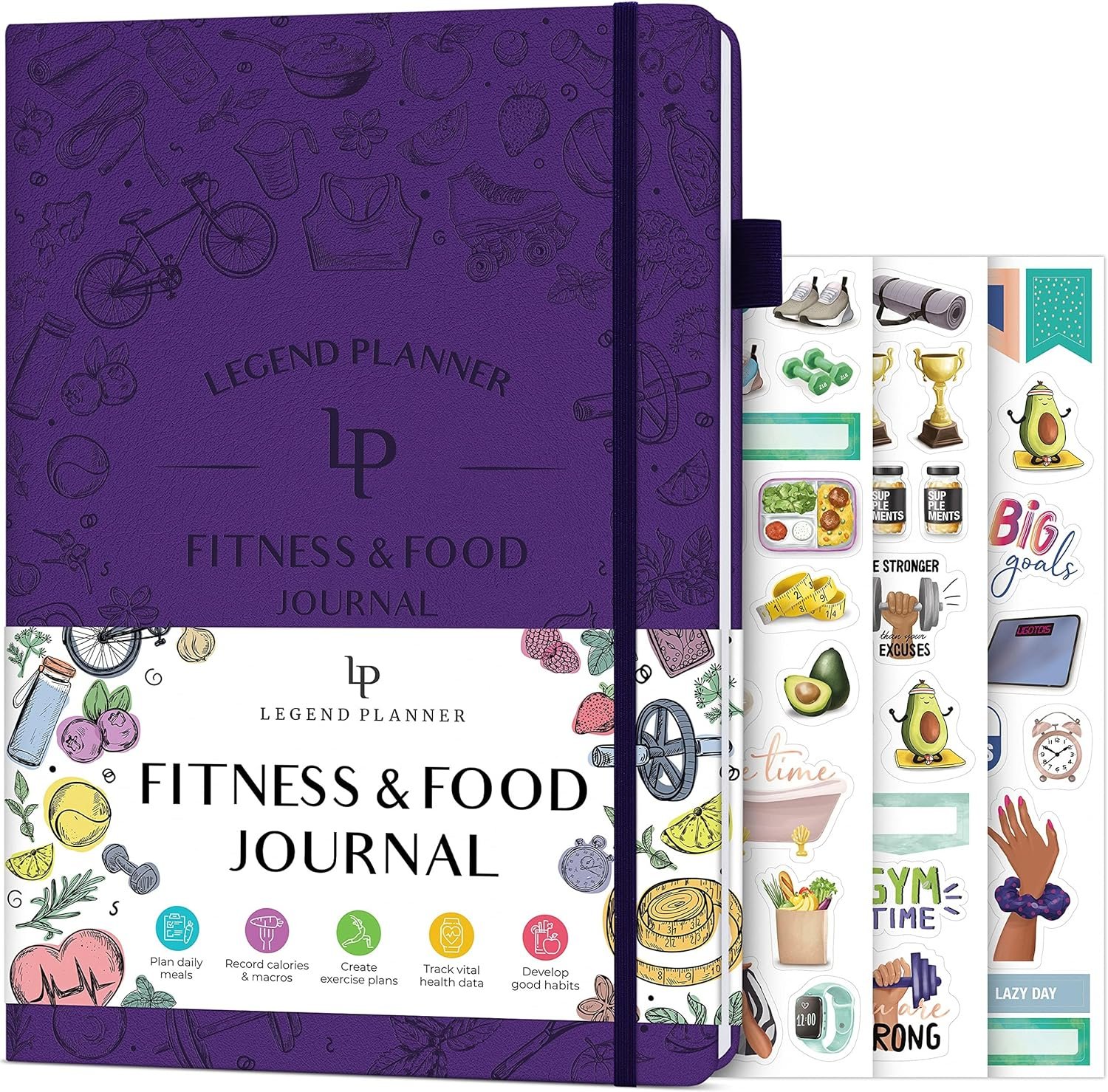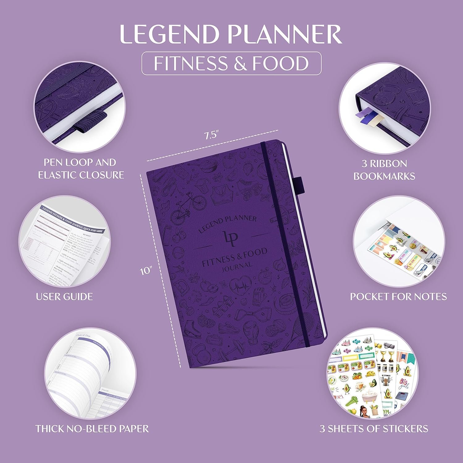 Legend Fitness & Food Journal – Nutrition & Workout Planner with Exercise Calendar & Nutrient Tracker – Gym Training & Diet Log Book for Women & Men – Lasts 3 Months, 7.5”x10” (Purple)