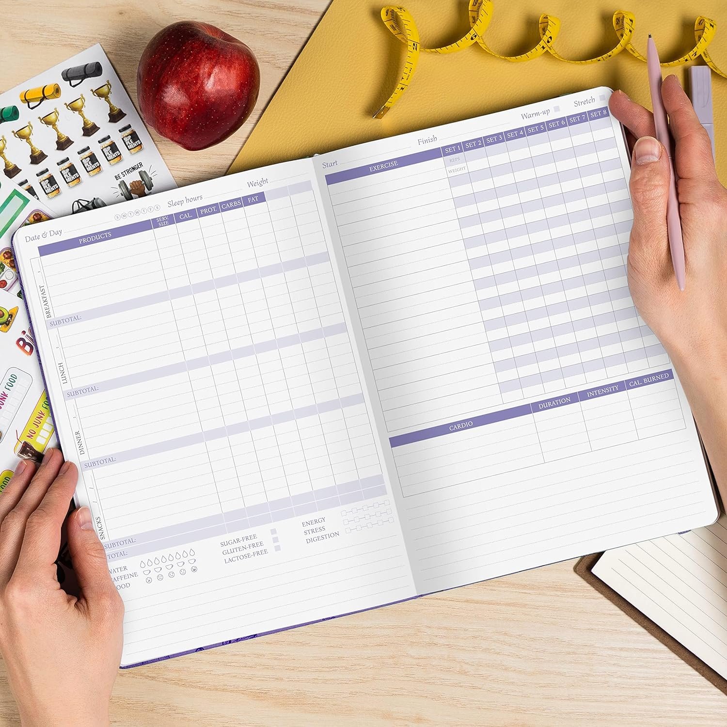 STICKERS, USER GUIDE & LARGE FORMAT: This fitness journal for women comes in large format (7.5×10 inches). The exercise journal has an eco-leather hardcover, thick 120gsm paper, 3 bookmarks, pen loop, elastic, pocket for notes, stickers, and user guide.