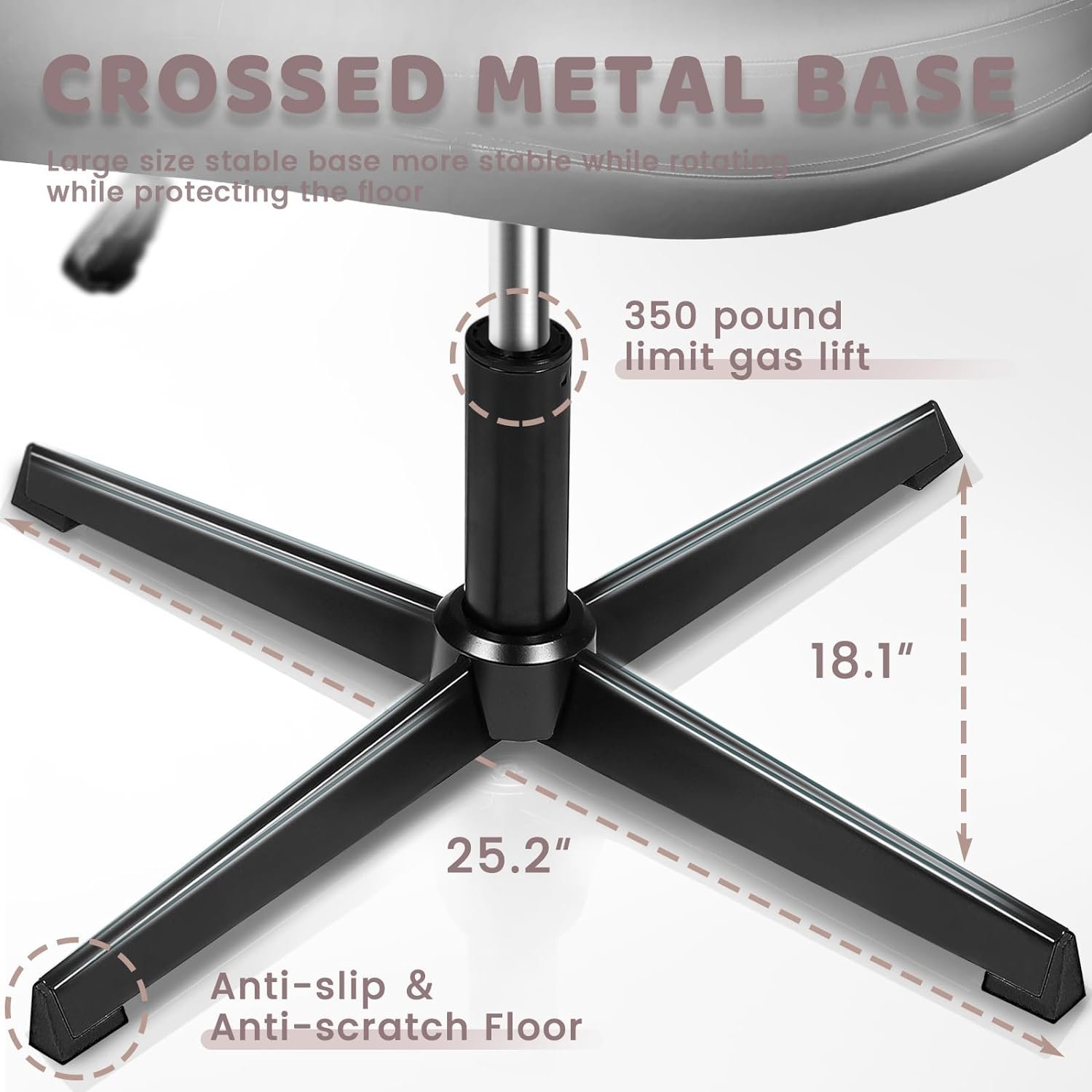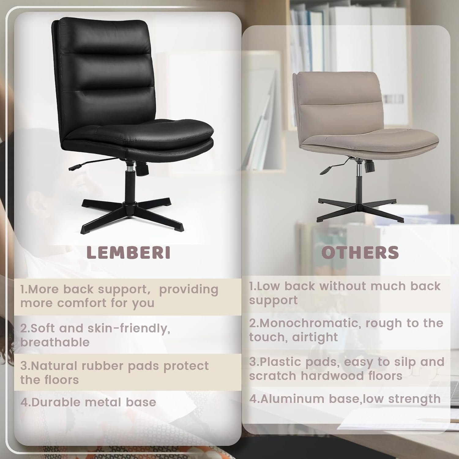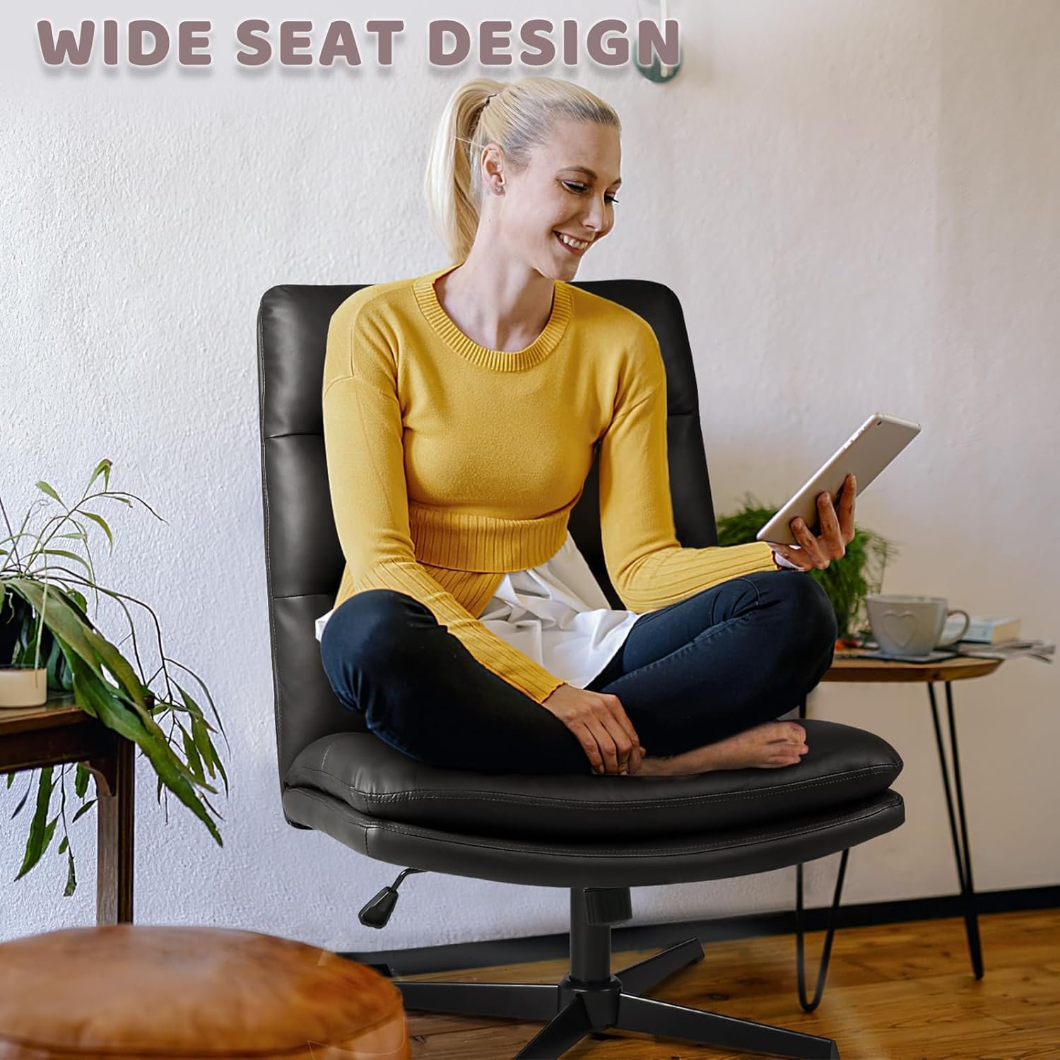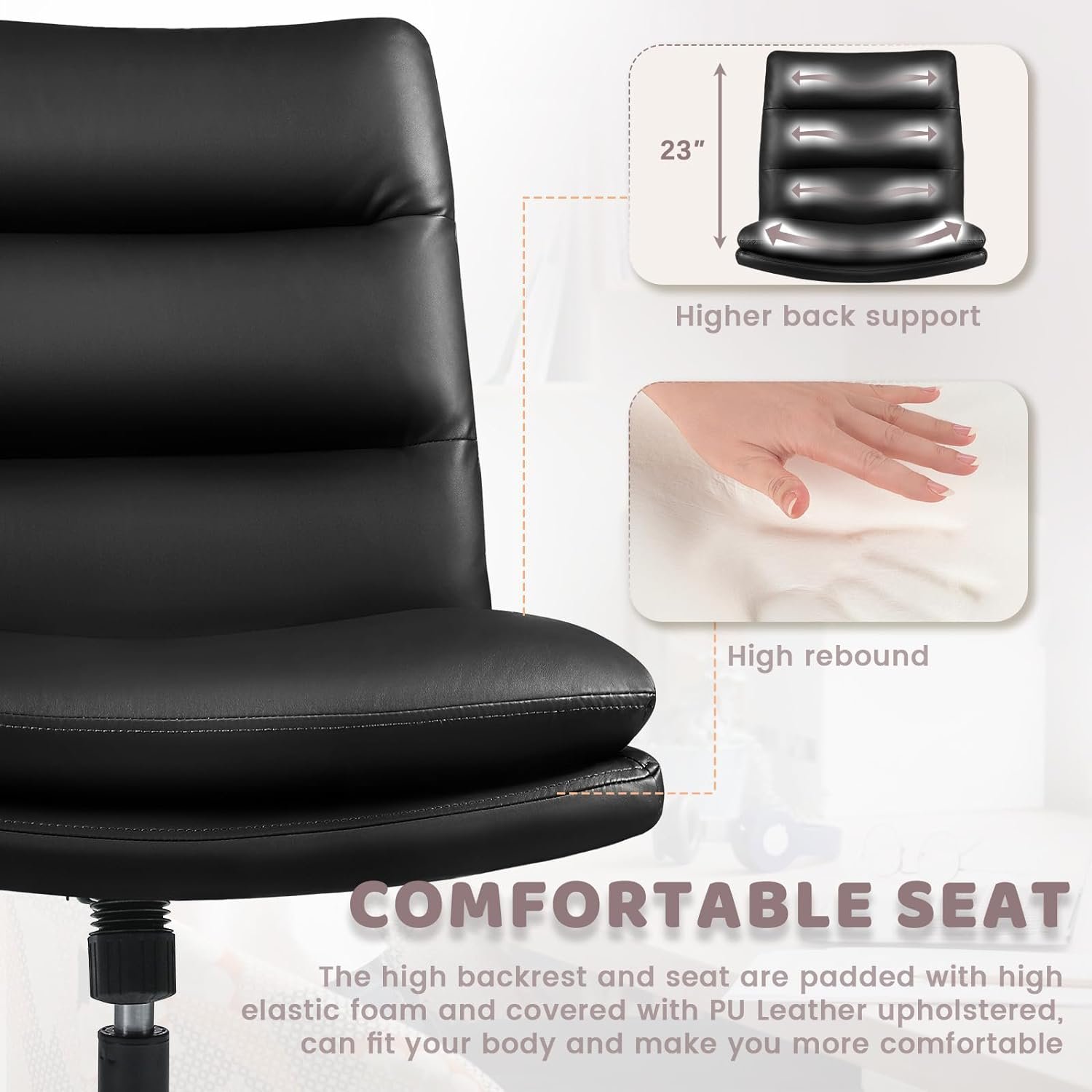 LEMBERI PU-Padded Armless Office Desk Chairs No Wheels, High-Back Wide Seat Home Office Desk Chair, 120°Rocking Cross Legged Computer Task Chairs, Modern Adjustable Swivel Vanity Chair (Black)