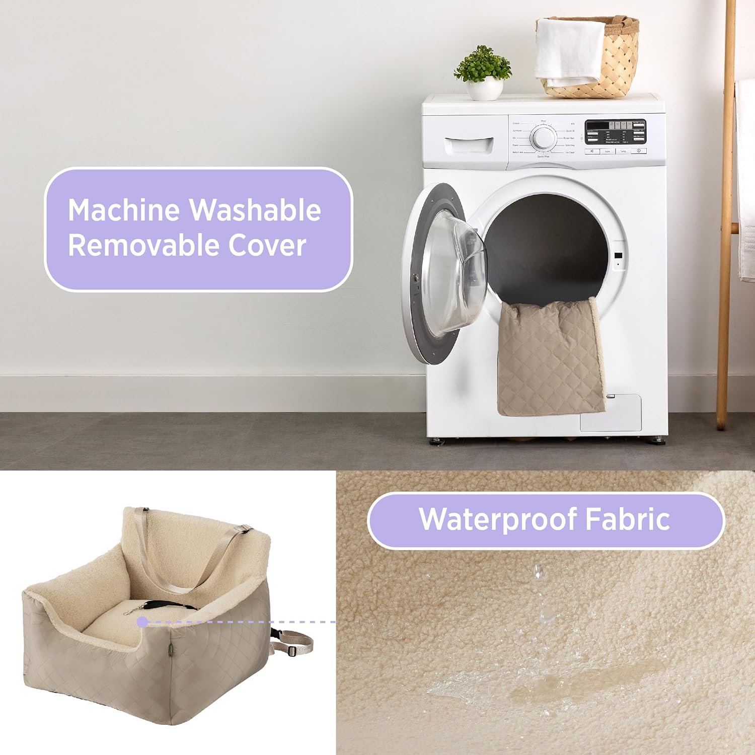 Easy Cleaning: Keeping the Quilted Car Seat Bed clean is effortless. Its detachable design features built-in sliding zippers for easy disassembly. The inner cushion with waterproof bottom ensure protection against spills, making life easier for you and comfier for your pet, while keeping your car spotless. The removable filling bags allow you to machine wash the cover for quick and simple upkeep.