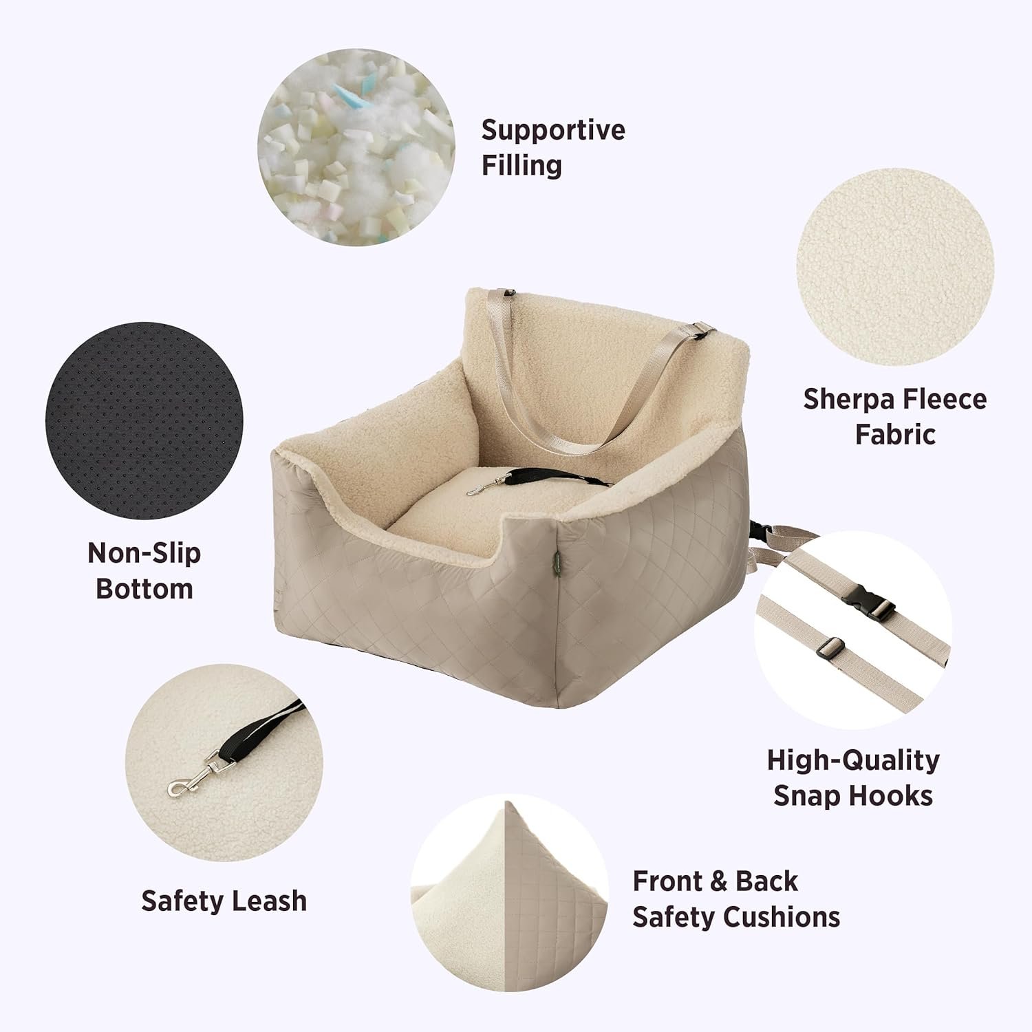 Ultimate Safety and Comfort: Keep your furry friend safe and comfortable on any car ride with Lesure’s Quilted Car Seat Bed. Whether in the front or back seat, our Pet Car Booster Seat offers three-fold security: a premium adjustable buckle, seat belt compatibility through dual strap slots, and dual security straps for headrest or seat back attachment. Plus, a safety strap hooks to your pet’s harness or collar for a snug fit, ensuring their safety while you drive with peace of mind.