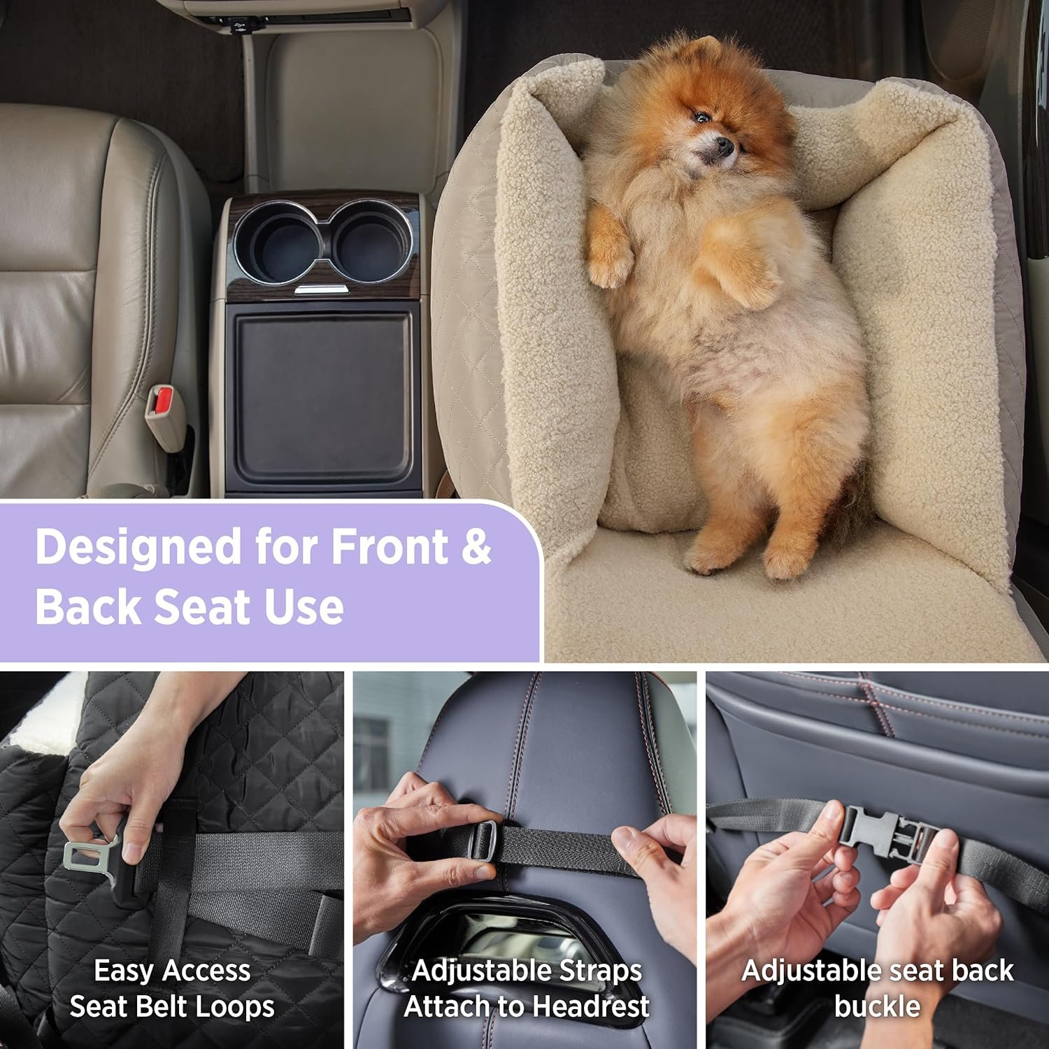 Comfort Meets Durability: Experience a blend of support and coziness with our Chopped Foam and Polyester Fiber mix. The golden ratio of fillings offers optimal comfort, while premium fabric, metal buckles, and snap-hooks ensure durability. The high-back design not only protects your car seat but also offers a cozy, warm, and scratch-resistant haven for your pet.