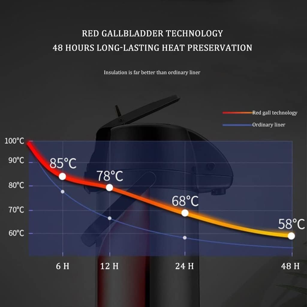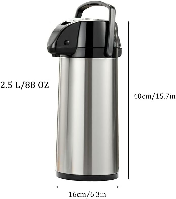 ✪ THERMAL COFFEE CARAFE: Capacity of 77/88 oz(2.2/2.5 L). Vacuum insulation technology locks in temperature to preserve flavour and freshness, that keeps beverages hot for over 12 hours or cold for over 24 hours.