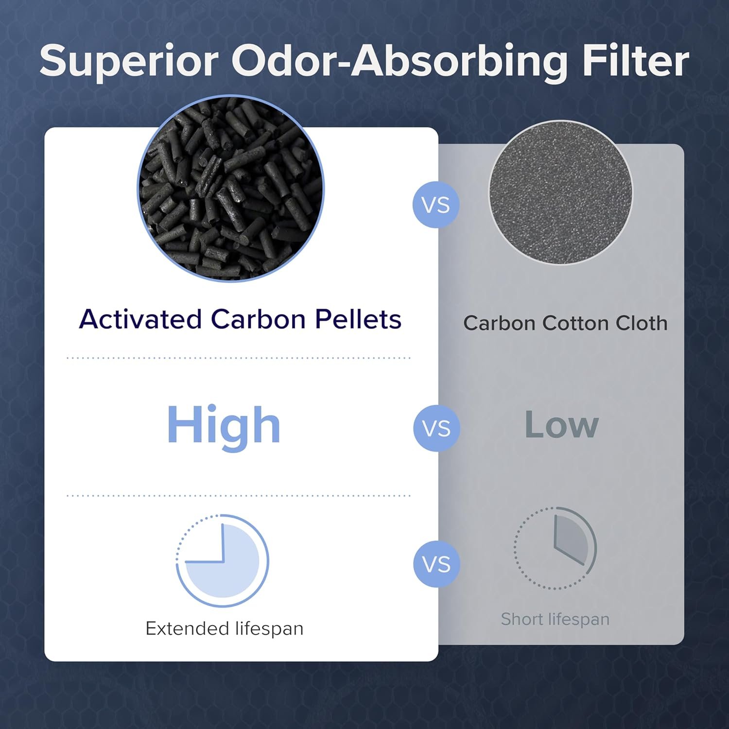 𝐖𝐀𝐒𝐇𝐀𝐁𝐋𝐄 𝐏𝐑𝐄-𝐏𝐈𝐋𝐓𝐄𝐑: Cleaning the Pre-Filter by water helps the 3-stage filtration system last longer. The Efficient Activated Carbon Filter helps remove pet odors, fumes, and VOCs