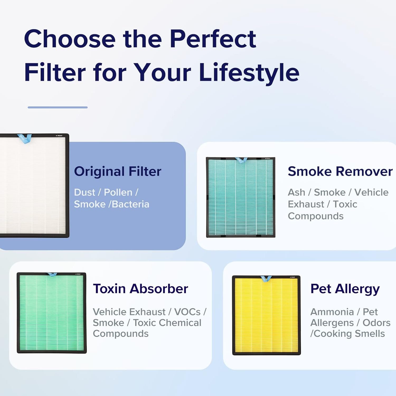 𝐇𝐈𝐆𝐇 𝐏𝐄𝐑𝐅𝐎𝐑𝐌𝐀𝐍𝐂𝐄: Our filter has a strong filtration performance of ultra fine particles 99.97 percent filtration efficiency for 0.1-0.3μm airborne particulates, including pollen, dust, and animal dander allergens.Disclaimer: Tested by an independent lab
