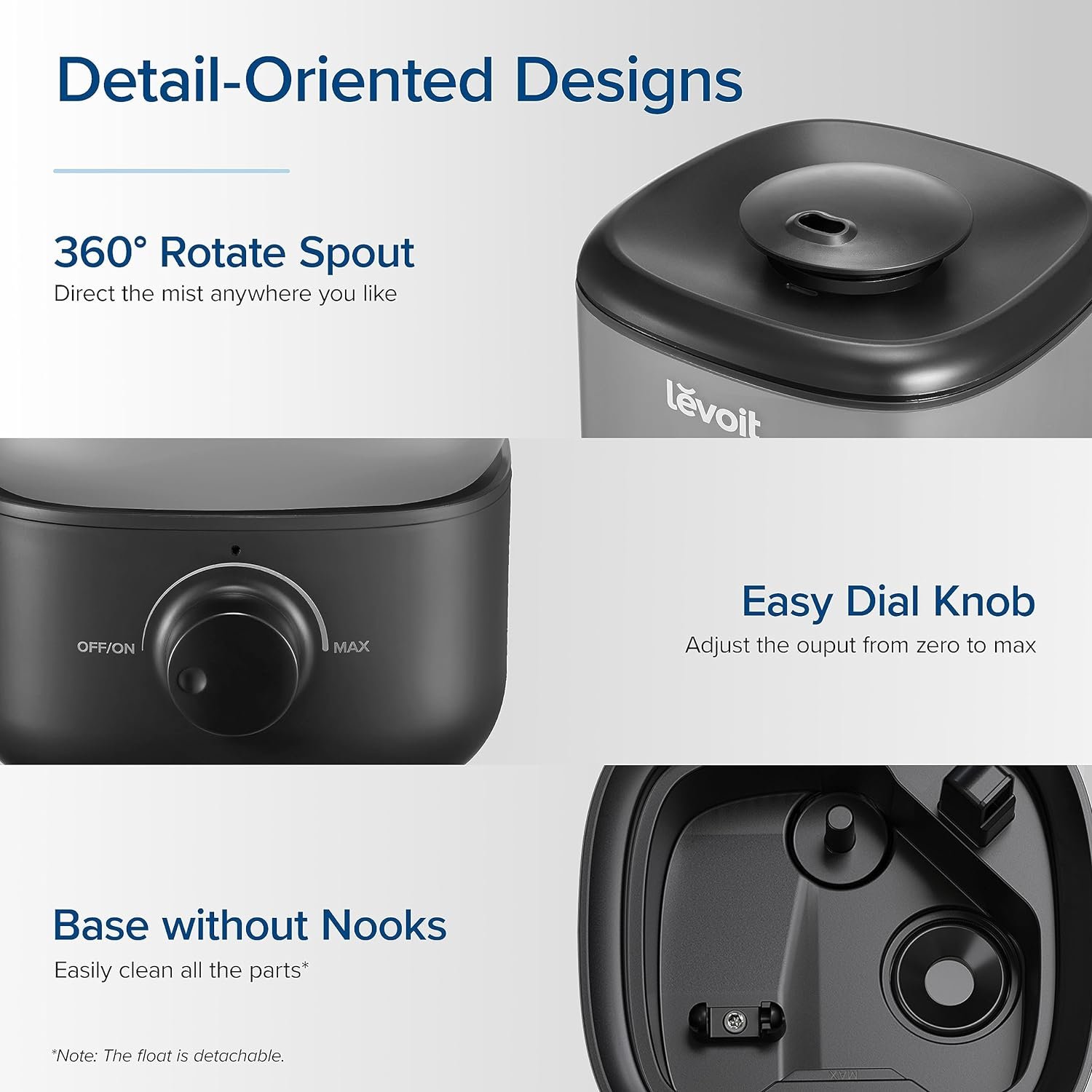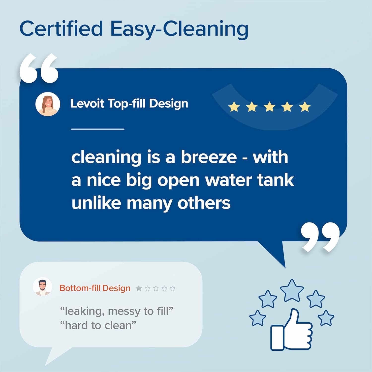 𝙀𝙖𝙨𝙮 𝙏𝙤𝙥-𝙁𝙞𝙡𝙡 𝘿𝙚𝙨𝙞𝙜𝙣: LEVOIT upgraded top-fill design, no need to turn the water tank over and no more spilling water all over the place! Just remove the cover and easily fill the tank.