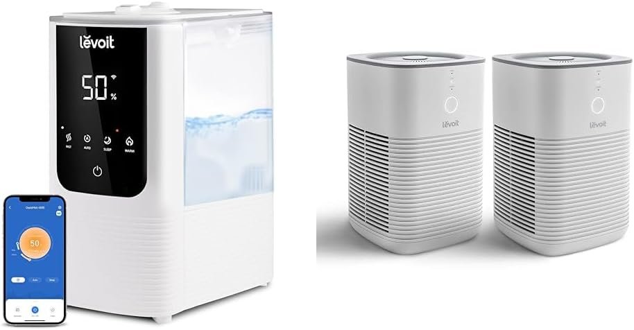 LEVOIT Humidifiers for Bedroom Home, Smart Warm and Cool Mist Air Humidifier for Large Room, Auto Customized Humidity, Fast Symptom Relief, Easy Top Fill, Essential Oil, Quiet, OasisMist4.5L, White