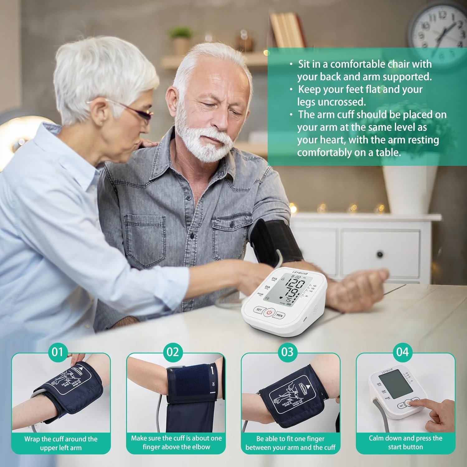【User-Friendly Design】 Our device is crafted with user convenience in mind. It features a simple, intuitive interface with large, clearly labeled buttons, making operation effortless for all users. The one-button operation eliminates complexity, allowing for stress-free monitoring. Designed to fit a wide range of arm sizes, the bp cuff is adjustable from 8.7 to 16.5 inches, ensuring a comfortable and secure fit.